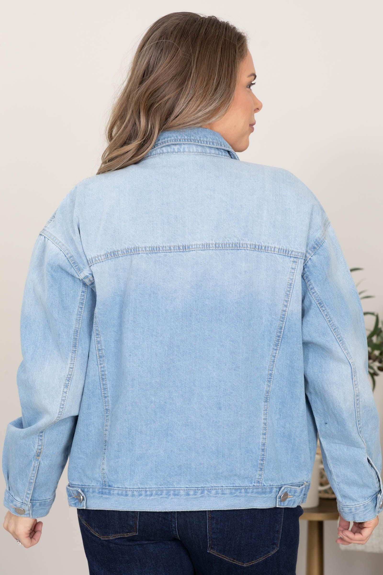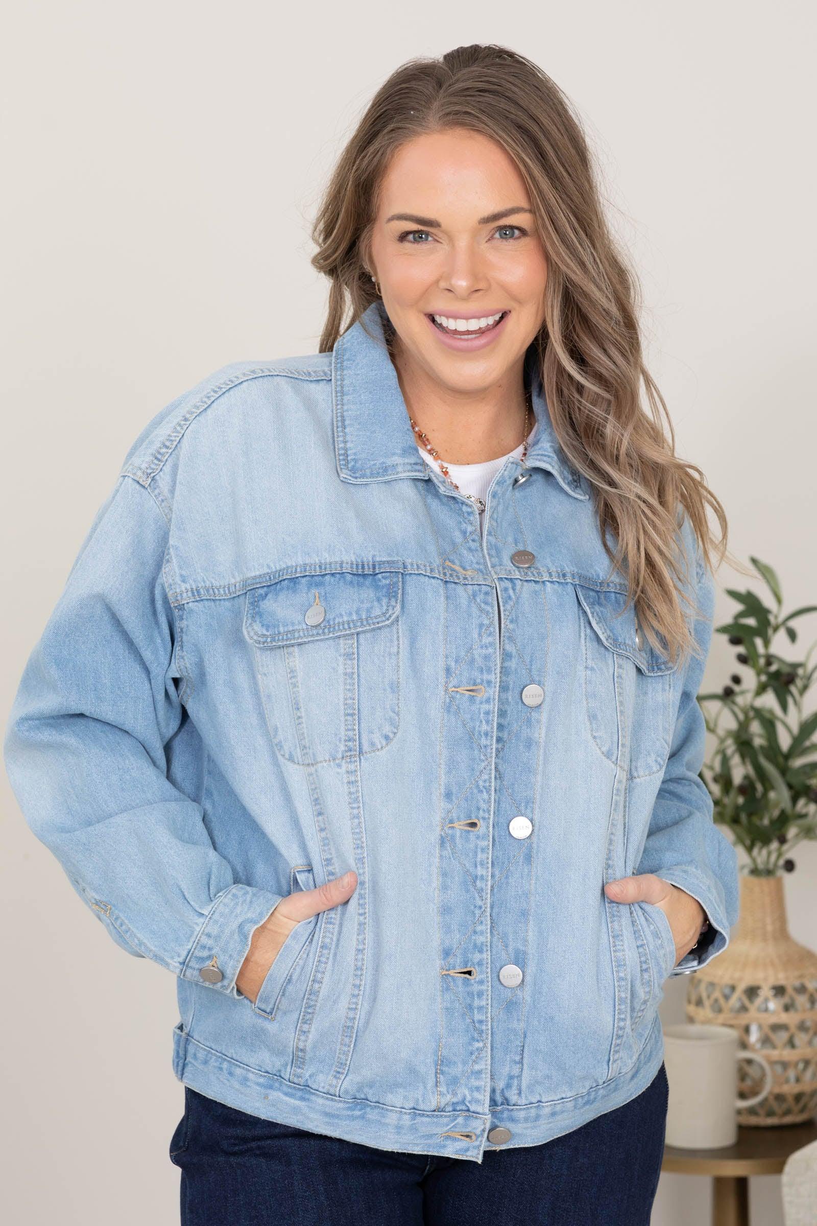 Product Details Colors: Light Wash Neckline: Button Down Sleeve: Long Sleeve Hemline: Straight Brand: Risen Material and Care 100% Cotton Machine Wash Cold Hang/Line Dry Size and Fit Small: Bust 50" Waist 48" Length 25" Medium: Bust 52" Waist 50" Length 25.5" Large: Bust 54" Waist 52" Length 26" X Large: Bust 56" Waist 54" Length 26.5" 1X Large: Bust 58" Waist 56" Length 27" 2X Large: Bust 60" Waist 58" Length 27.5" 3X Large: Bust 62" Waist 60" Length 28" Erica is 5’7” and wearing her true size small