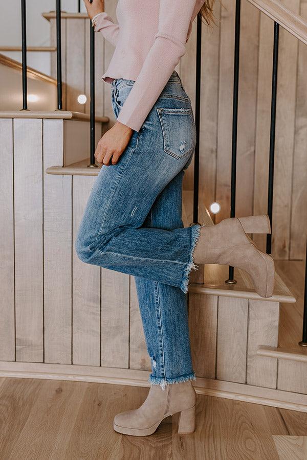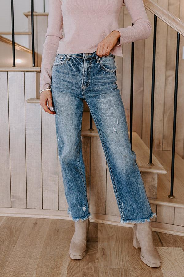 - These trendy jeans are the perfect balance of style and comfort! - Lightweight denim material with distressed detailing - A high waistline with belt loops - A hidden zip fly with a button closure - A functional four-pocket cut - A flattering figure hugging silhouette that falls into straight unfinished hemlines with frayed detail Measurements 1 : Front Rise 11.5", Hip 29", Inseam 27.5", Length 37.5", Waist 23". 3 : Front Rise 11.5", Hip 30", Inseam 27.5", Length 37.5", Waist 24". 5 : Front Rise 12", Hip 31", Inseam 27.5", Length 37.5", Waist 25". 7 : Front Rise 12.5", Hip 32", Inseam 27.5", Length 38", Waist 27". 9 : Front Rise 12.5", Hip 33", Inseam 27.5", Length 38.5", Waist 28". 11 : Front Rise 13", Hip 34", Inseam 27.5", Length 38.5", Waist 29". 13 : Front Rise 13", Hip 35", Inseam 28", Length 39", Waist 30". 15 : Front Rise 13.5", Hip 36", Inseam 28", Length 39", Waist 31".