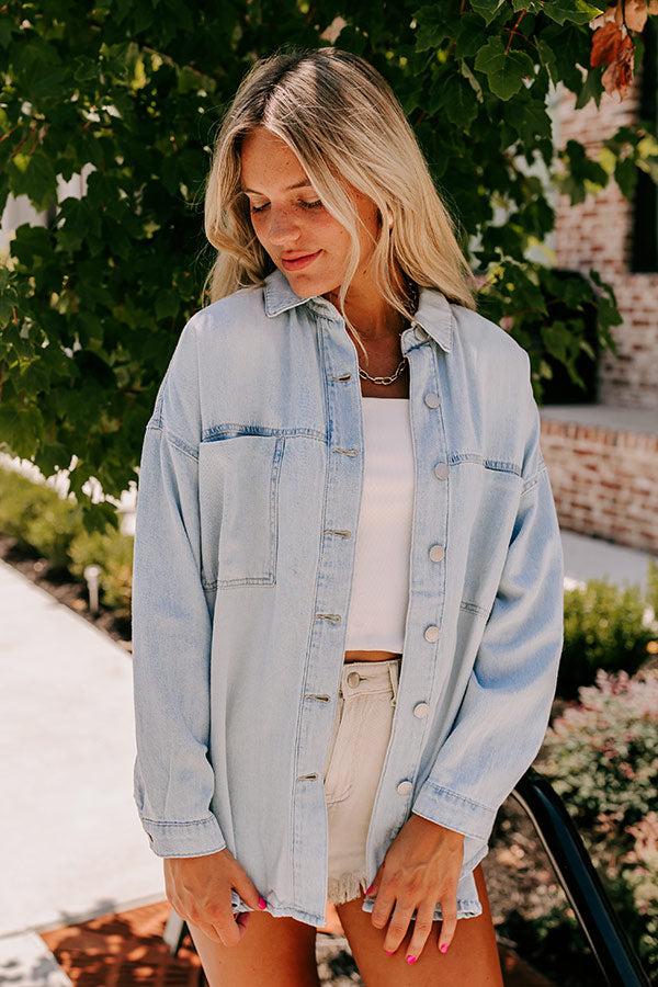 - Keep it trendy with this lightweight layering piece! - Unlined, non-stretch denim material - A collared neckline that goes into a button-down front - Functional chest pockets as well as low side pockets - Long sleeves with button closure cuffs - A relaxed yet flattering silhouette that ends in a rounded hemline Measurements S : Bust 49", Hip 48", Length 29", Sleeve Length 17.5", Waist 48". M : Bust 51", Hip 50", Length 30", Sleeve Length 18.5", Waist 50". L : Bust 53", Hip 52", Length 30.5", Sleeve Length 19.5", Waist 52". XL : Bust 54", Hip 53", Length 31.5", Sleeve Length 20", Waist 53".