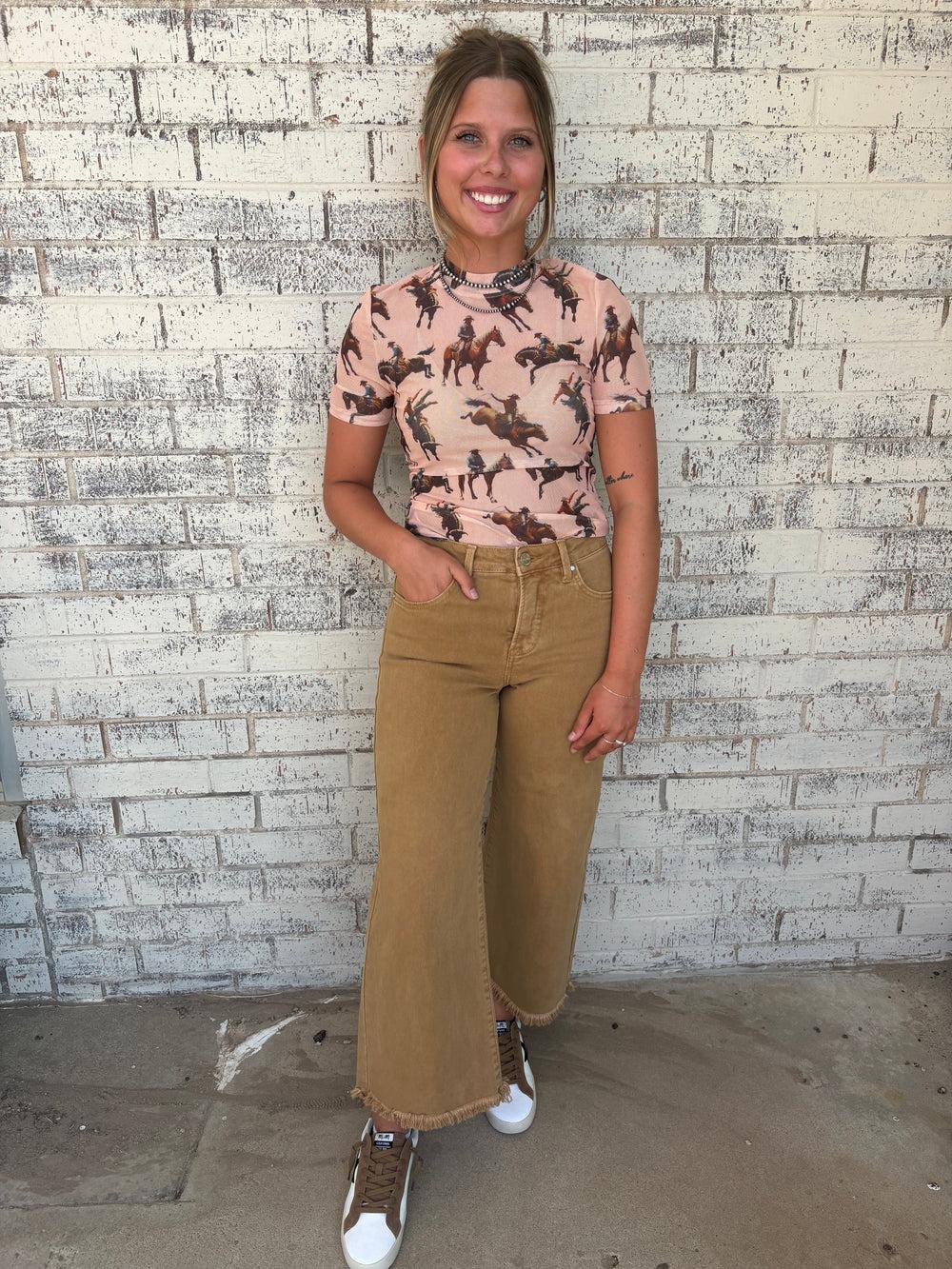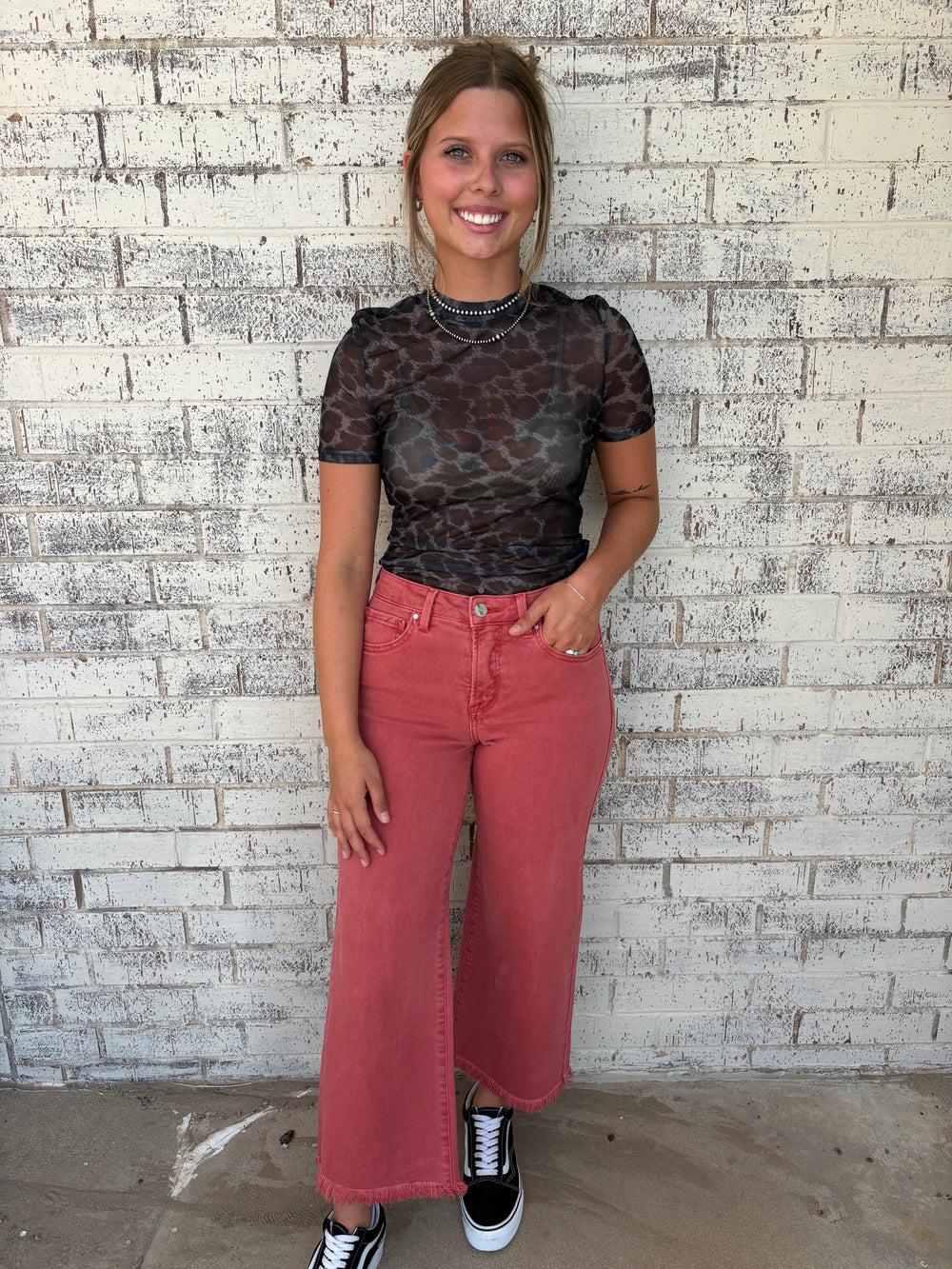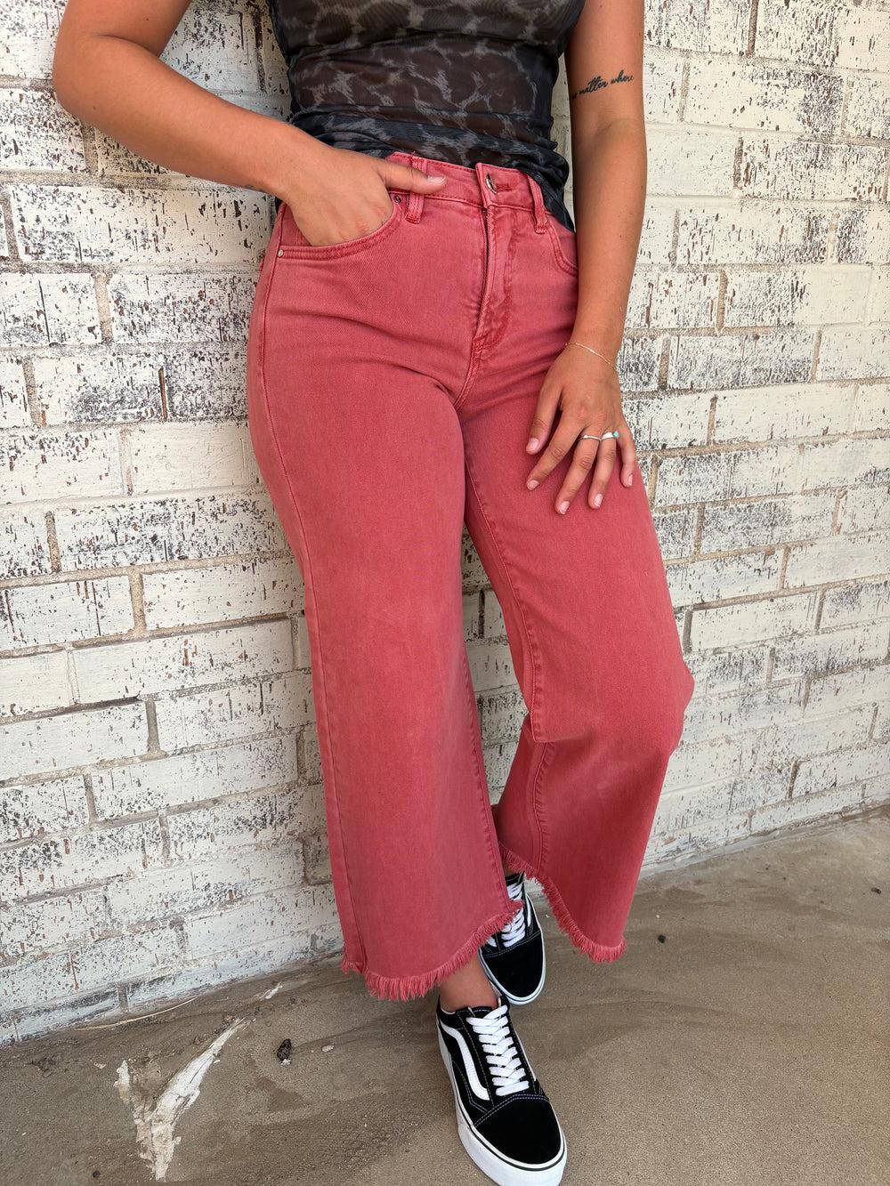Risen Tummy Control Rise Crop Wide Pants-2 Colors