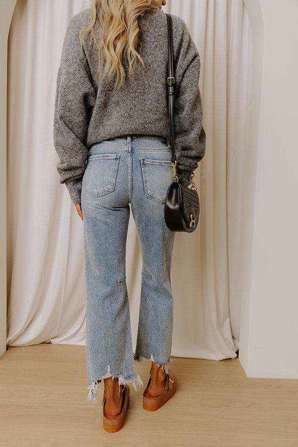 - These trendy distressed jeans bring an effortless cool vibe to your everyday style! A must-have piece for creating laid-back yet polished looks. - Unlined stretchy denim material with fading and distressed detailing - Belt loops - A hidden zip fly and button closure - Functional front and back pockets - Accent seams on the lower pant leg - A relaxed silhouette that ends in an unfinished, frayed hemline
