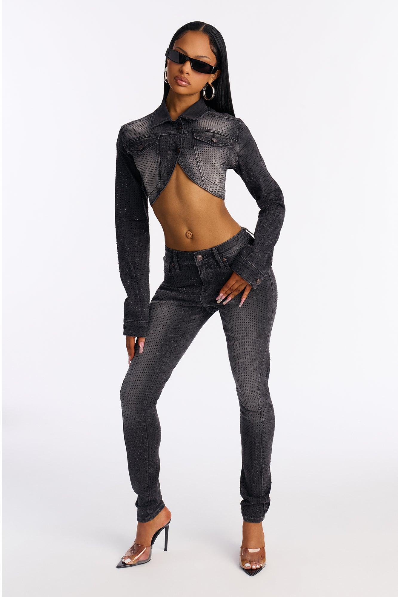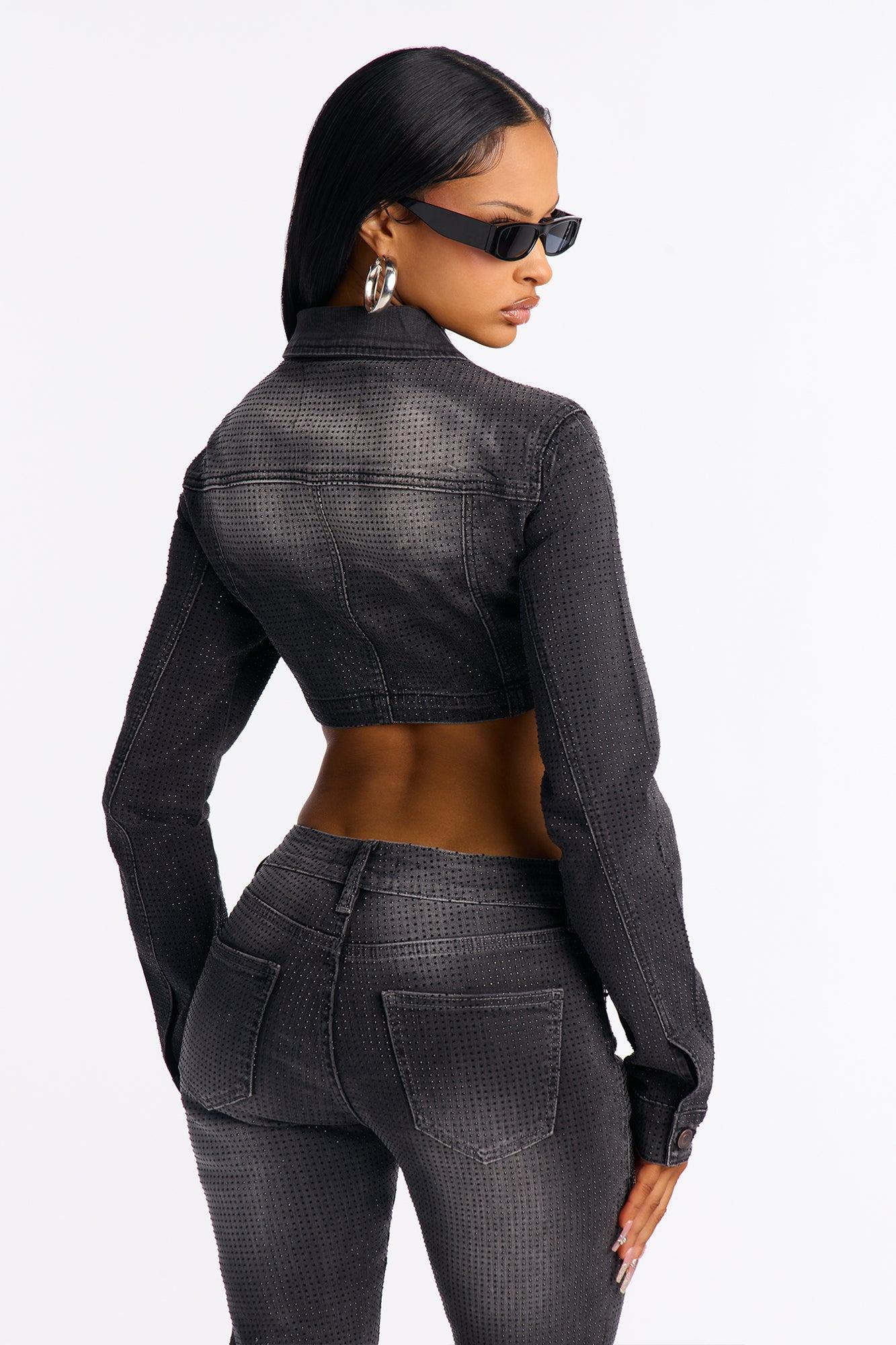 Ritzy & Glitzy Embellished Denim Bolero Jacket - Black Wash Female