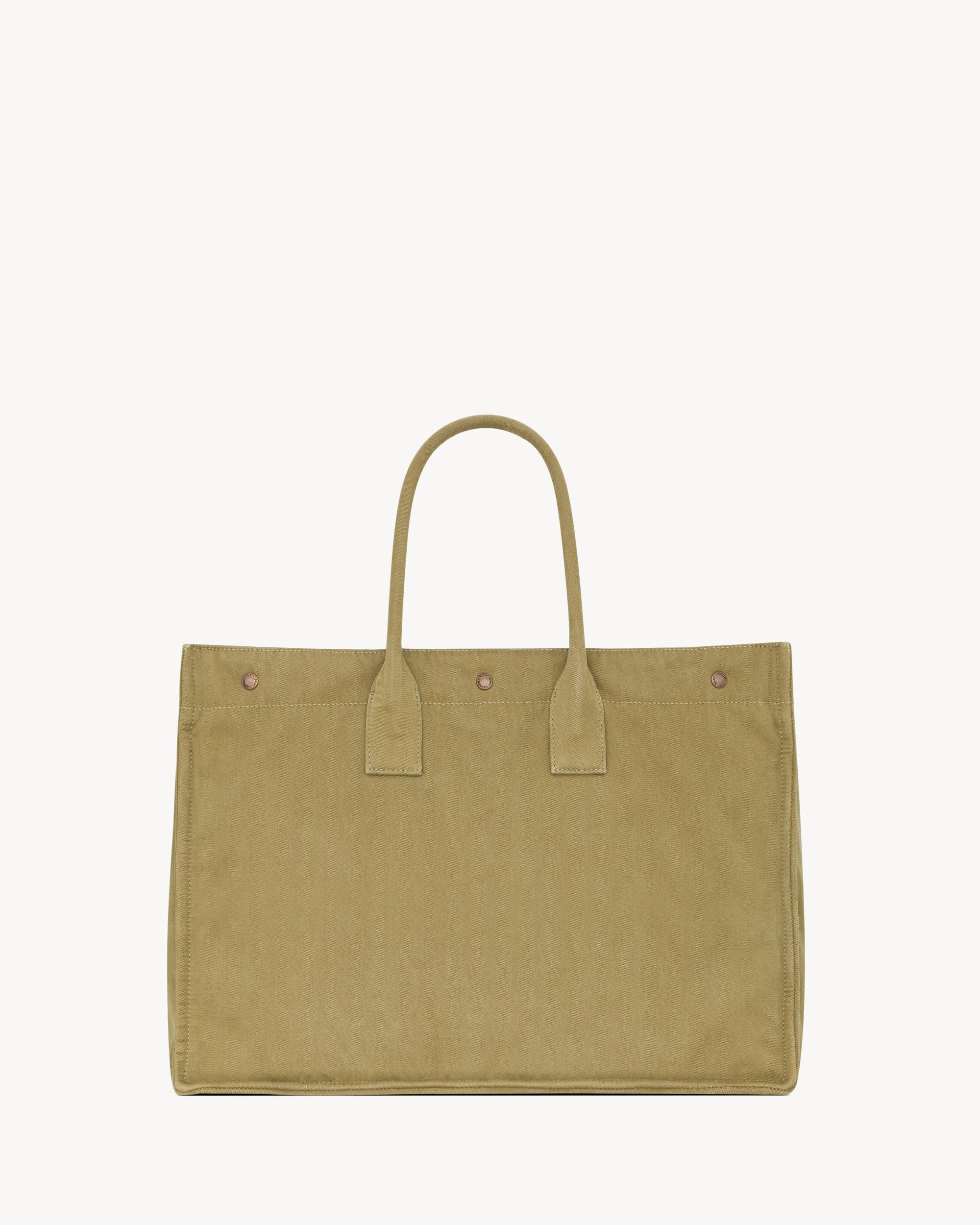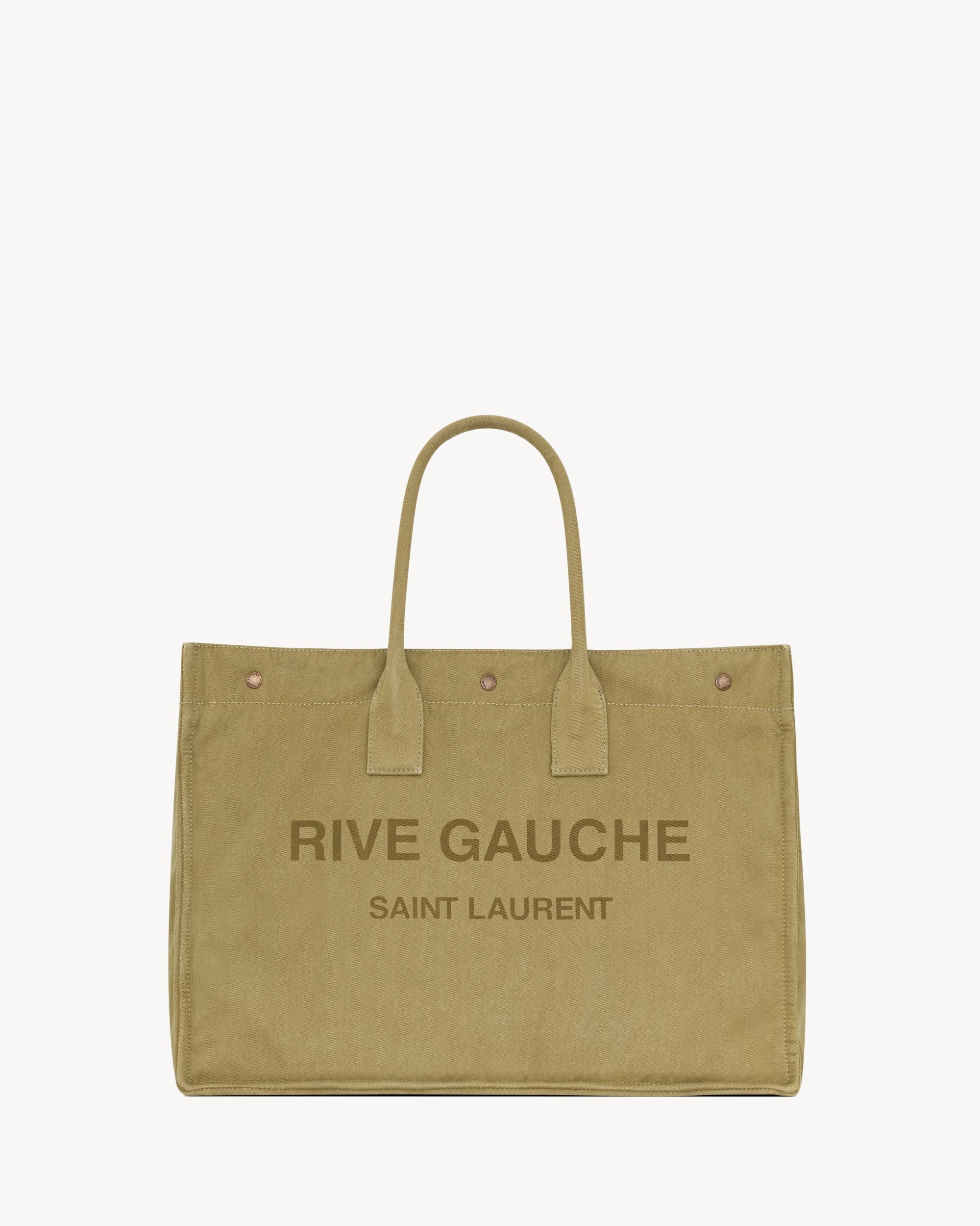 SAINT LAURENT RIVE GAUCHE tote bag made with certified cotton, featuring rolled handles, an inner zip pocket, and three saint laurent-engraved snap buttons at the top.