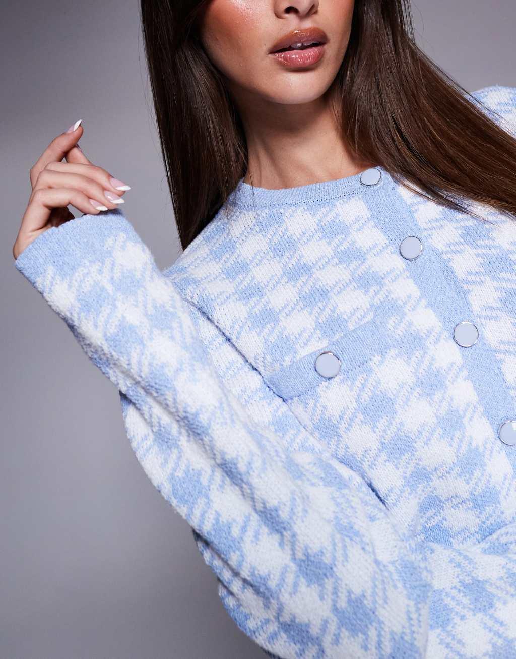 River Island checked cropped cardigan in light blue