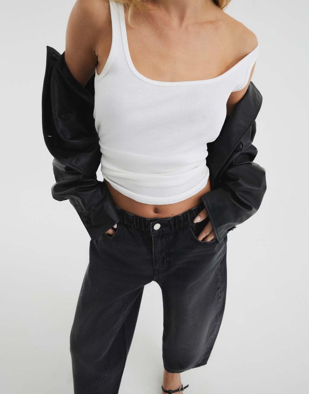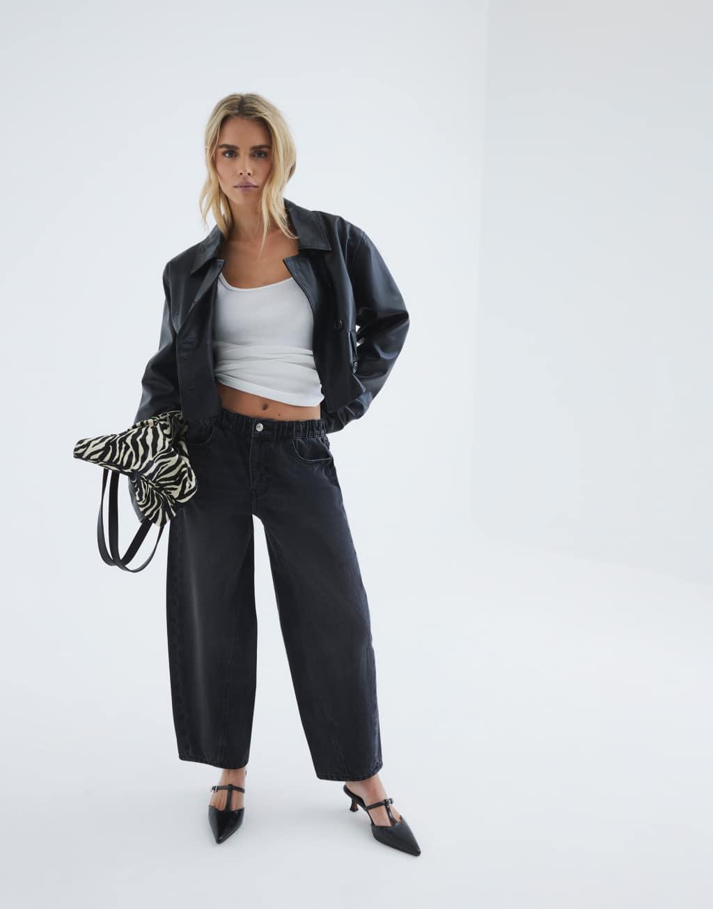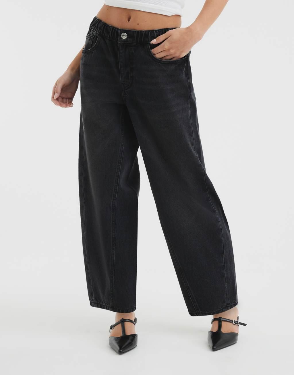River Island elasticized barrel leg jeans in black