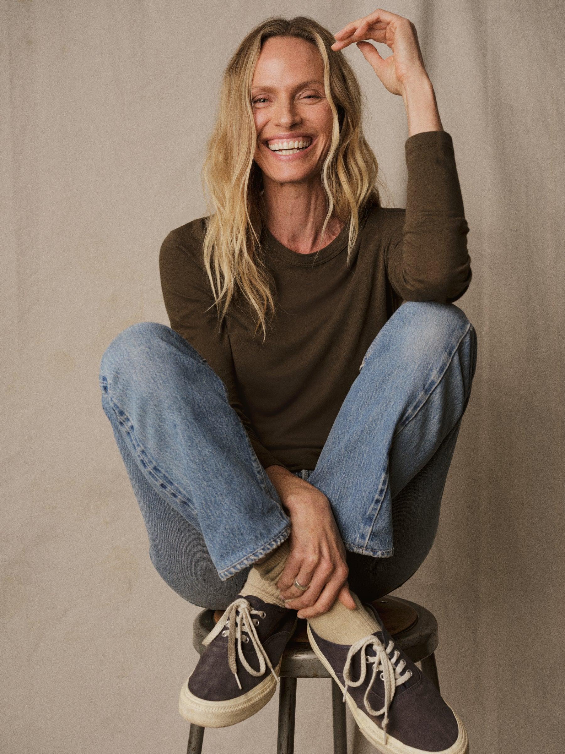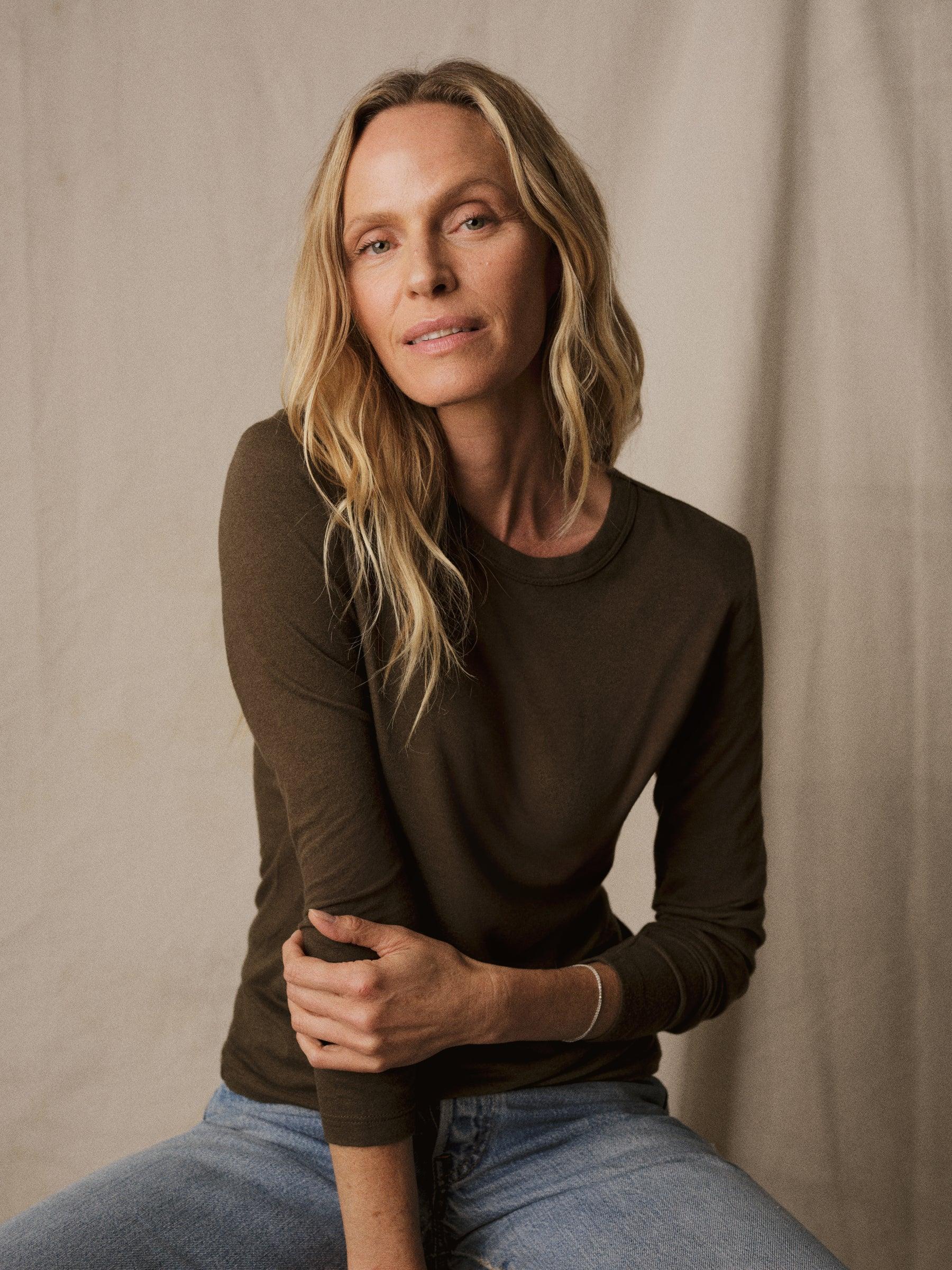 Slim fit long sleeve crewneck tee cut from a supersoft 130 GSM bamboo/cotton/wool blend.