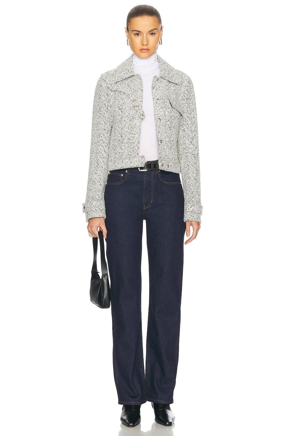 jacketSelf: 25% cotton, 20% wool, 15% viscose, 15% acrylic, 15% polyamide, 10% alpacaLining: 100% viscose / Made in Poland / Dry clean only / Hidden front button snap closure / Breast flap pocket / Belted cuffs / Cropped fit / Tweed fabric / Our Style No. PROE-WO51 / Manufacturer Style No. R2512000 / Model is wearing size 2.