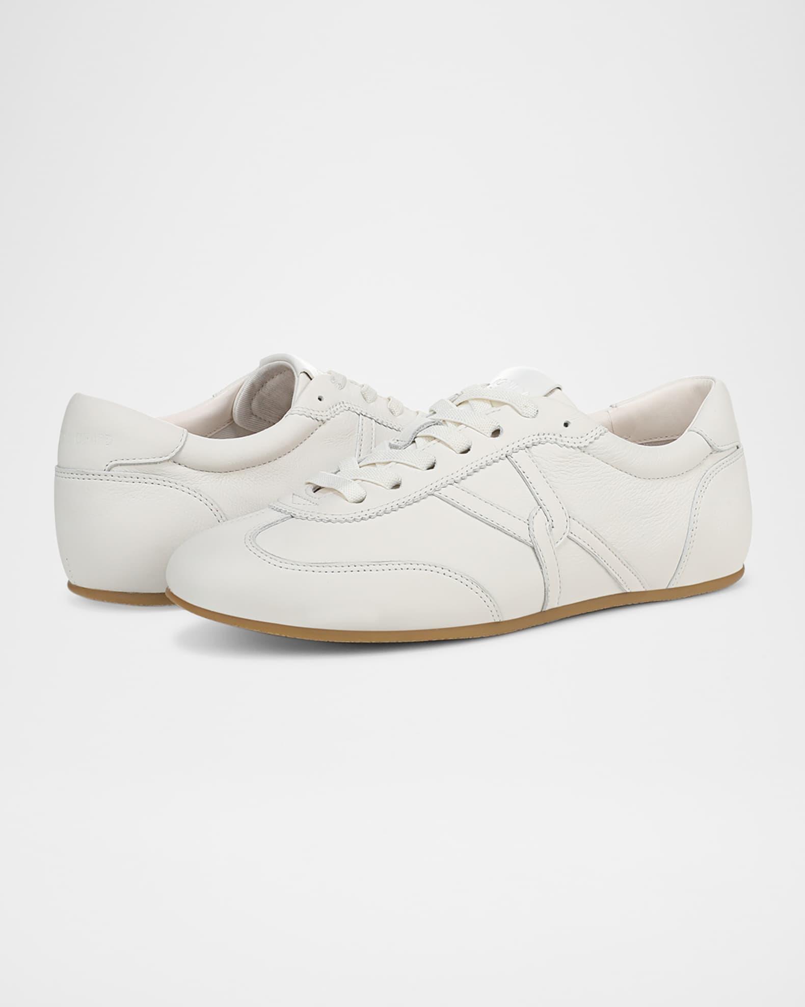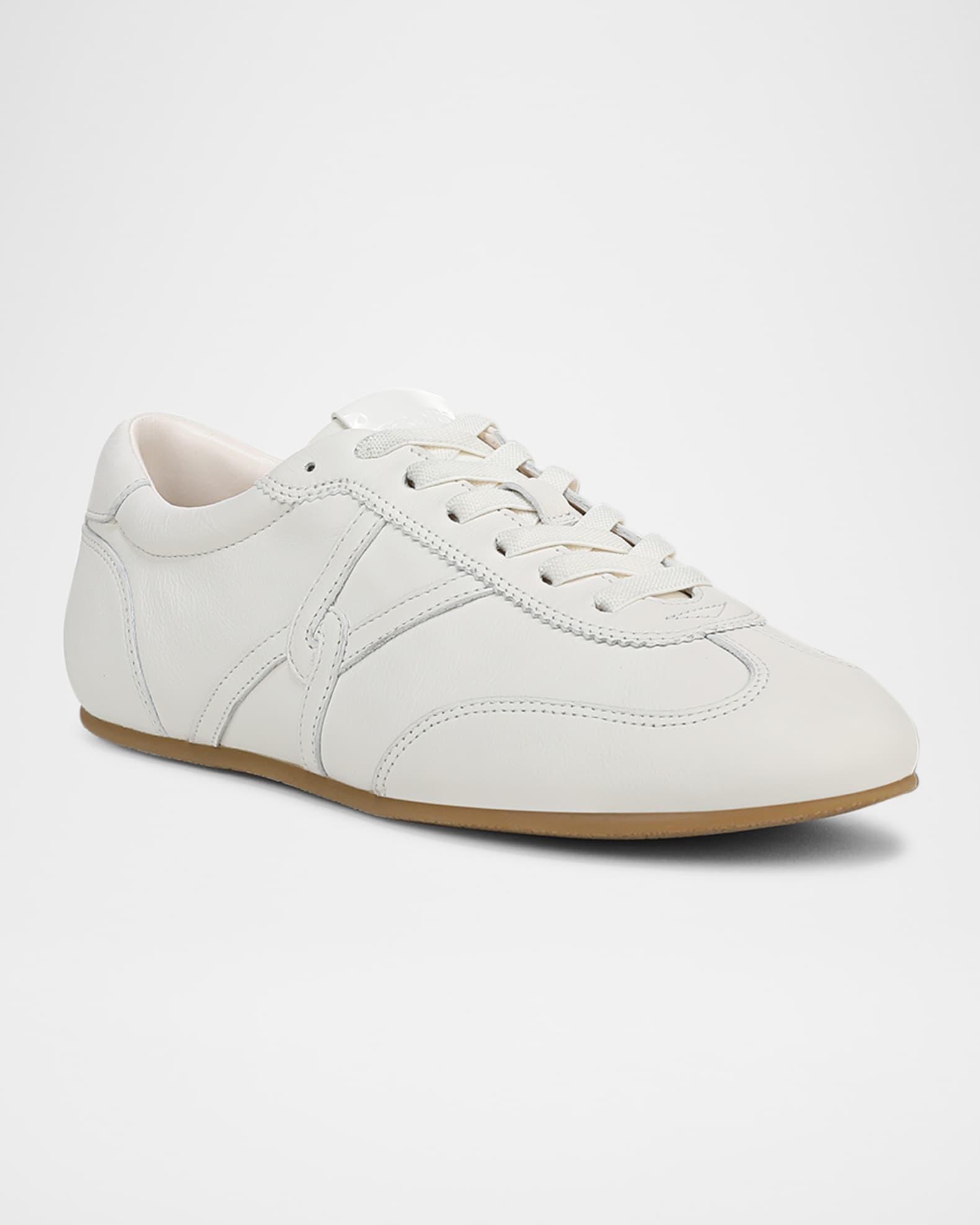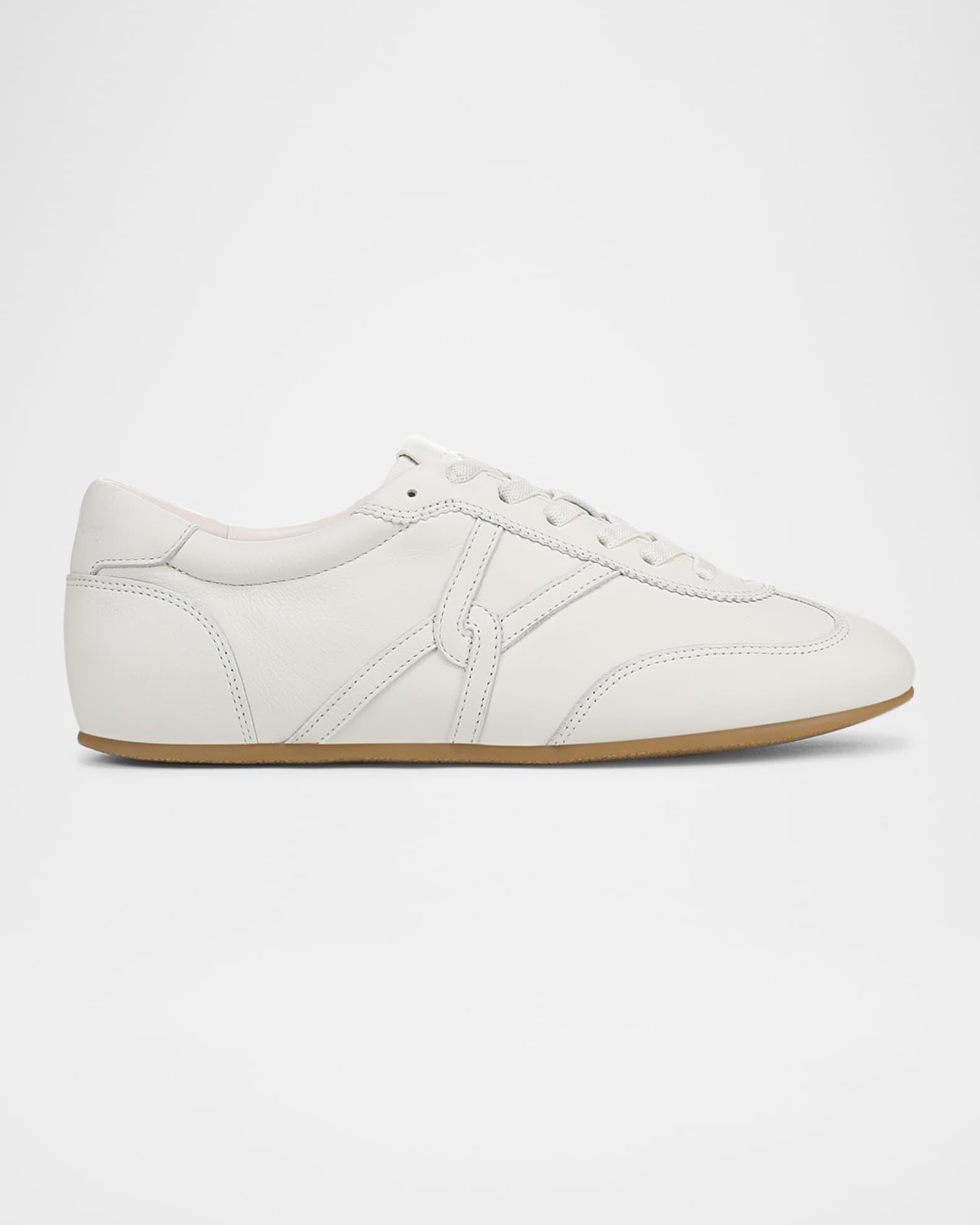 Veronica Beard "Riviera" low-profile leather sneakers Flat heel Round toe Lace-up vamp Rubber outsole Lining: Leather Spot clean Imported