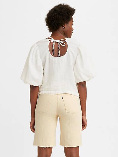 The quintessential free-spirit style. A flowy silhouette and feminine puff sleeves give this trendy blouse that airy vibe we all strive for in the summer. We crafted this garment using a Japanese double weave fabric for a subtle texture. A breezy summer style, crafted in premium Japanese double weave fabric Features a flowy fit in the body and voluminous puff sleevs Back neck-tie