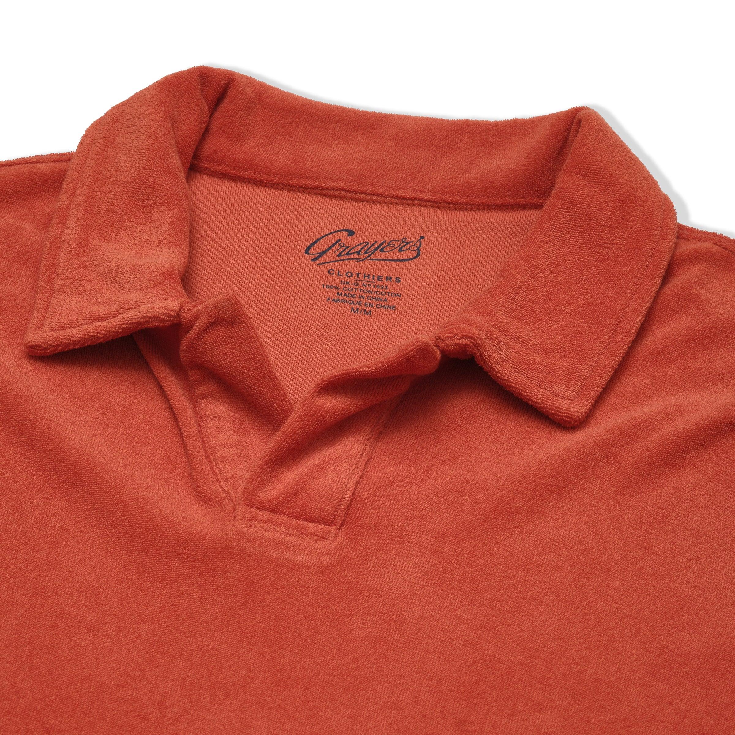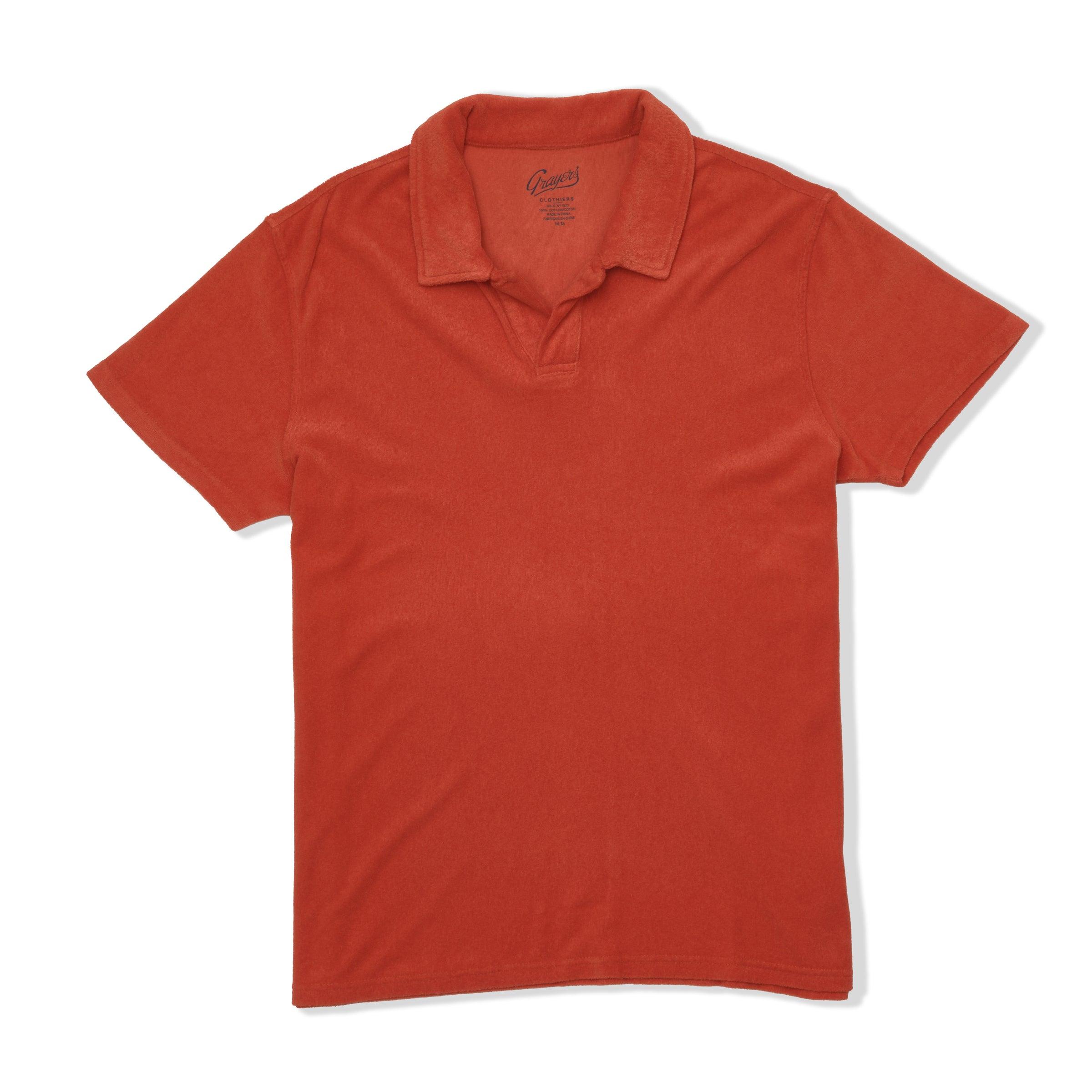 A tip of the collar to the bon vivants and scoundrels of the '60s French Riviera. This polo is crafted from lightweight, all-cotton French terry—a looped yarn wonder born in the 1800s and reborn as “la chemise du plage” for beachside bon vivants. Garment dyed with a button-free Johnny collar, it’s soft, laid-back, and effortlessly cool. Think Alain Delon on holiday. No buttons, no problem. The Model is also wearing: Model: ----Details---- Self fabric "Johnny collar" Button free placket Split tail Garment dyed Lightweight all cotton toweling fabric (terry) Printed label for greater comfort Imported ----Materials---- 100% Cotton ----Size & Fit---- Measuring Method: All measurements are in inches and based on a “flat” garment, as shown below. For comparison with one of your existing garments, please lay garment on a flat surface and follow the key measurement points. For chest and neck, if you double the flat measurement, you will get close to the full body measurement. ----Care---- Machine Wash Cold Separately Do Not Soak Before Washing Do Not Bleach Remove Promptly Tumble Dry Low Or Hang Dry In Shaded Area Cool Iron If Necessary