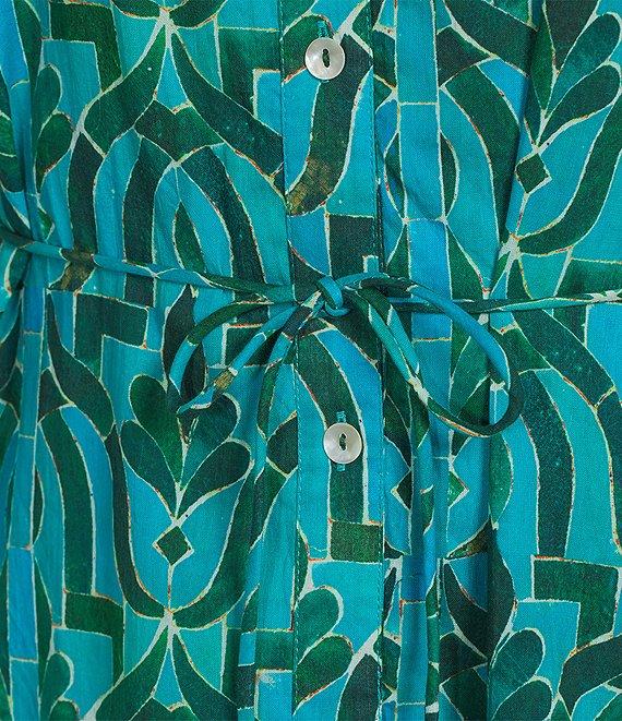 From Ro's Garden, this dress features: Woven fabrication Soraya print V-neckline Long sleeves Straight hem Button front closure Approx. 25" length Cotton Hand wash Imported.