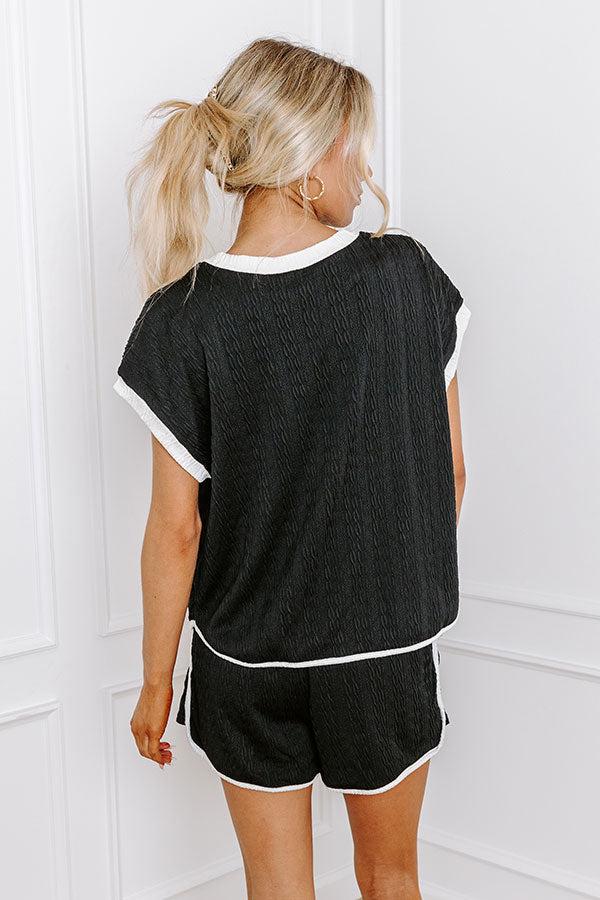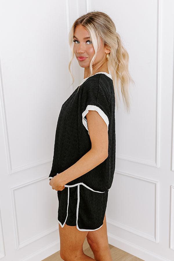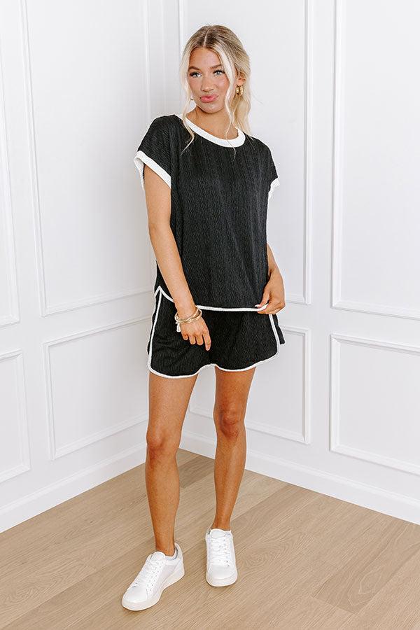 - Upgrade your casualwear collection with this cutie! With its trendy texture and a chic vibe this piece will easily elevate you OOTD. Whether you are strolling through the downtown square or lounging at a resort, this unique top is sure to keep you looking stylish. - Unlined stretchy material with a textured stripe pattern - Ivory accents at the neckline, sleeves and hemline - A crew cut neckline - Short, loose sleeves - A relaxed silhouette that ends in a curved hemline