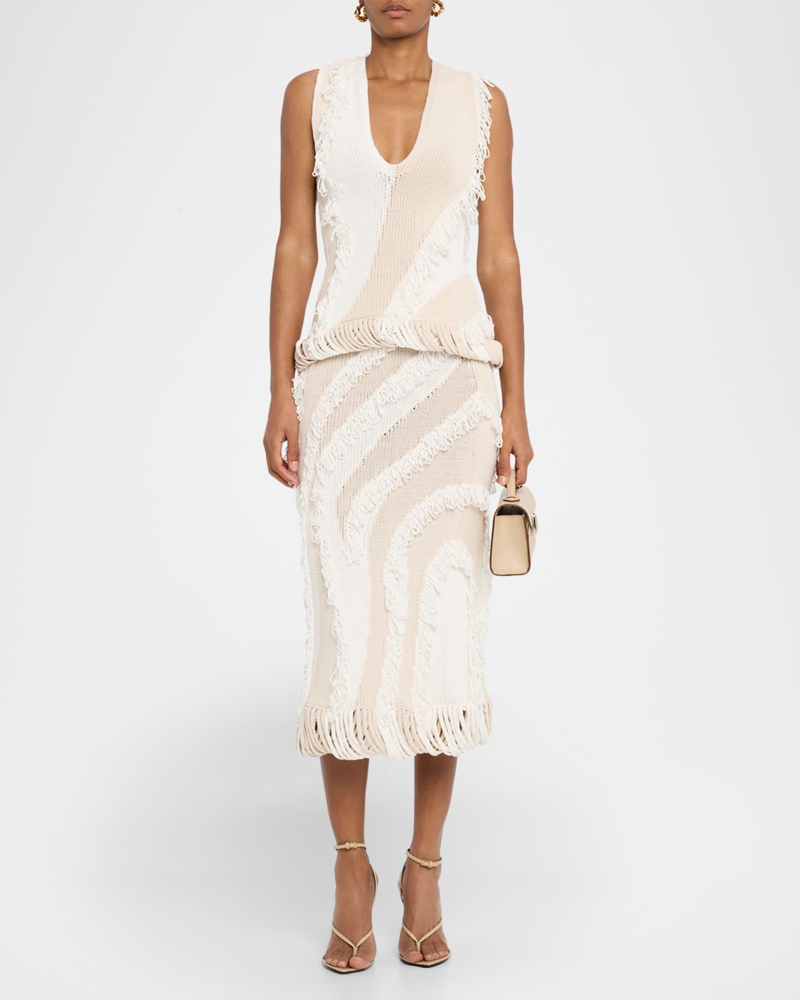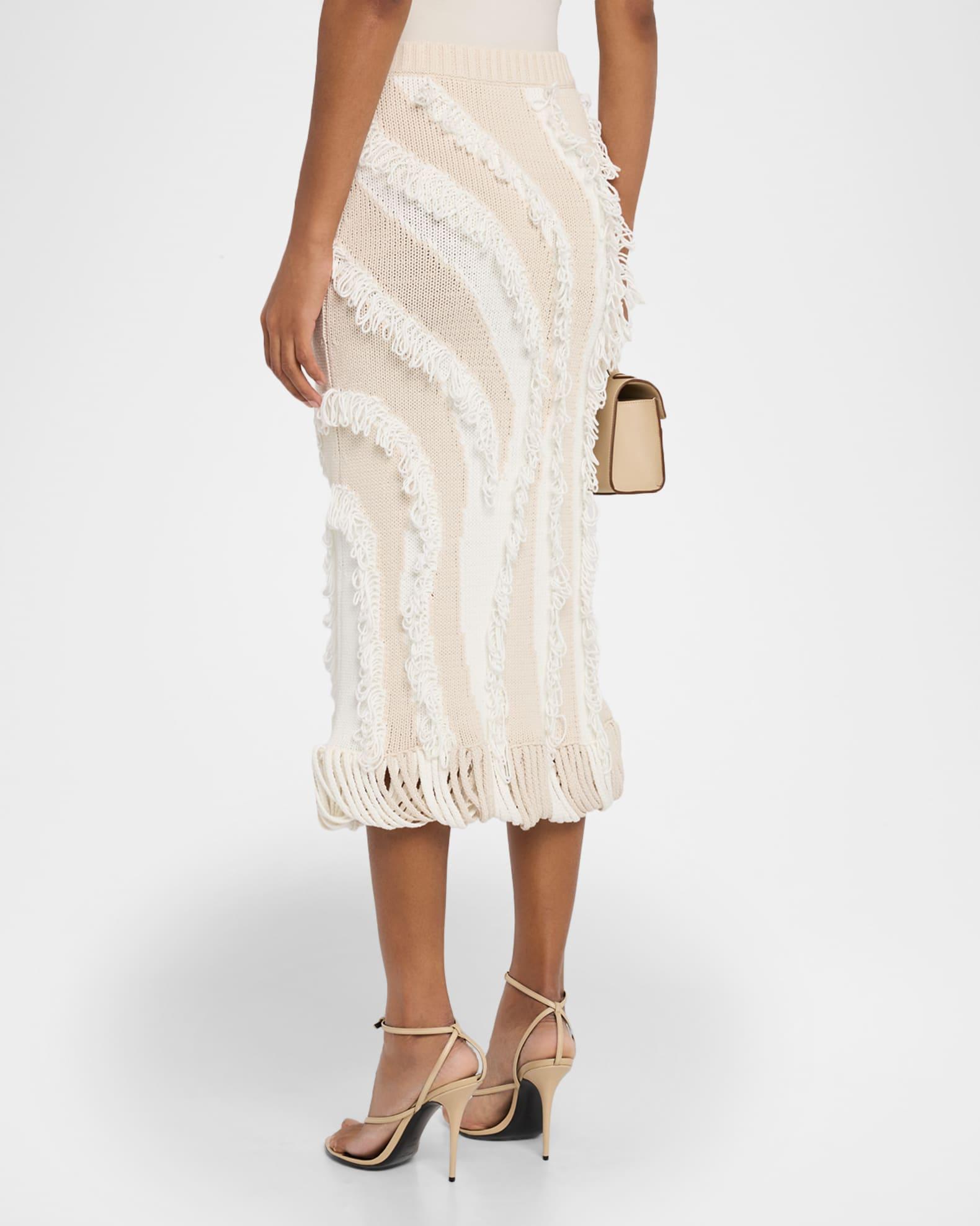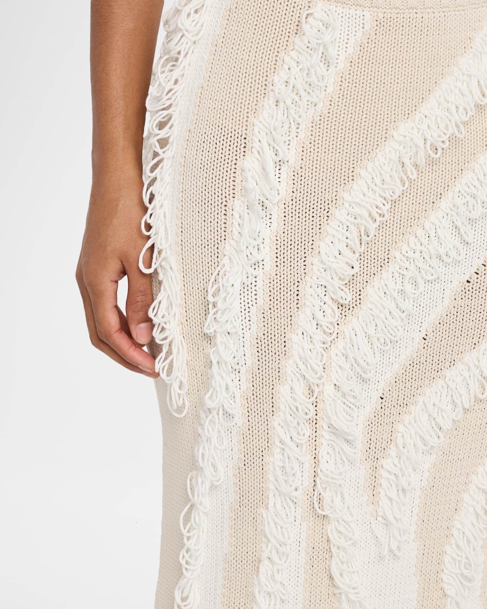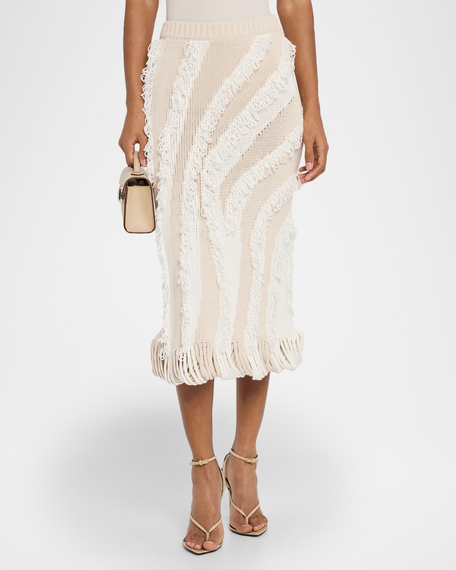 Diotima "Roaring" knit skirt featuring a swirl intarsia and looped fringe Mid waist Full length Skirt falls straight from hip to hem Pull-on style Cotton/nylon/polyamide Professional cleaning recommended Imported Proposition 65 warning for California residents