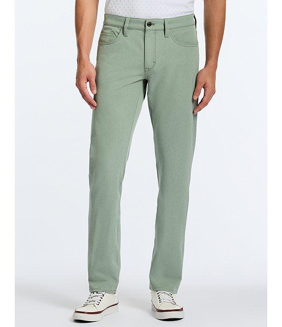 From Robert Graham, these pants feature: Straight fit Contrast at inside waistband Belt loops Zip fly with button closure 5-pocket styling Signature leather patch on the back Woven stretch fabric Polyester/spandex Machine wash/tumble dry Imported.