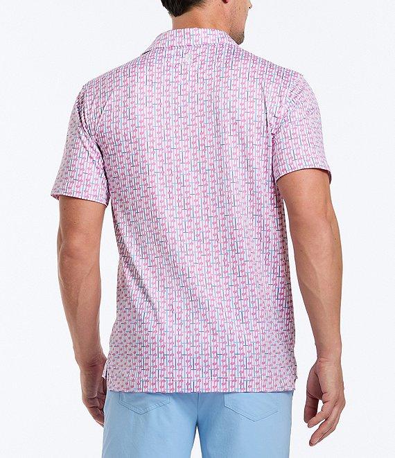 From Robert Graham, this polo shirt features: Allover print Contrast Clubhouse logo embroidered at back neck Polo collar 3-button placket Short sleeves UV protection Moisture wicking Stretch fabric Polyester/spandex Machine wash/tumble dry Imported.