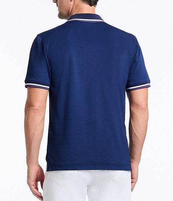 From Robert Graham, this polo shirt features: Polo collar with multi-color stripe detail Short sleeves with stripe detail 3-button placket Poker graphic on the left side of the chest Stretch fabric Polyester/spandex Machine wash/tumble dry Imported.