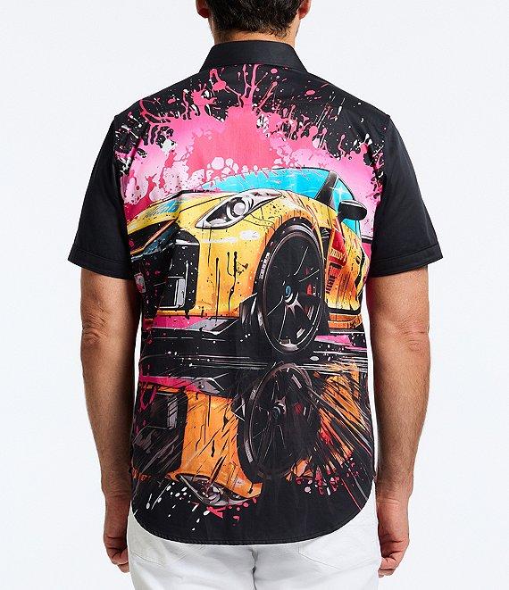 From Robert Graham, this shirt features: Point collar Short sleeves Vibrant car graphic Button-front closure Rounded hem Stretch fabric Cotton/spandex Machine wash/tumble dry Imported.