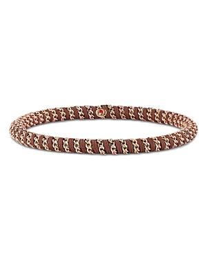 Roberto Demeglio Mens 18K Rose Gold Gio Brown Nautical Cord Stretch Bracelet