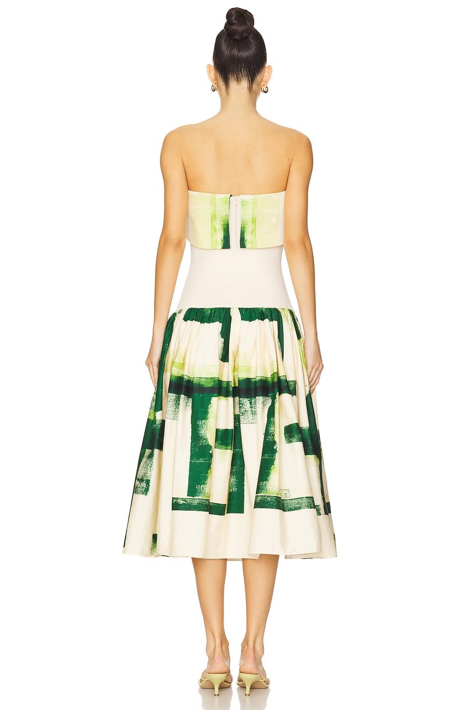 Self: 95% cotton, 5% elastaneContrast Fabric: 54% viscose, 45% nylon, 1% elastane. Dry clean only. Unlined. Concealed back zipper closure. Side pockets. Midweight crepe fabric with ribbed knit bodice. Neckline to hem measures approx 41" in length. Made in China. Revolve Style No. AXIS-WD870. Manufacturer Style No. A1250439-0414.