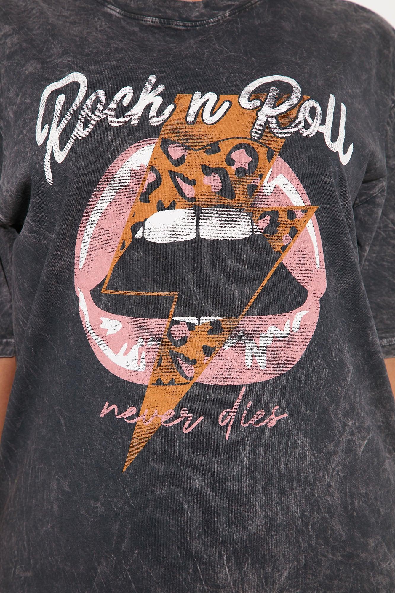 Rock N Roll Washed T-Shirt Dress - Charcoal