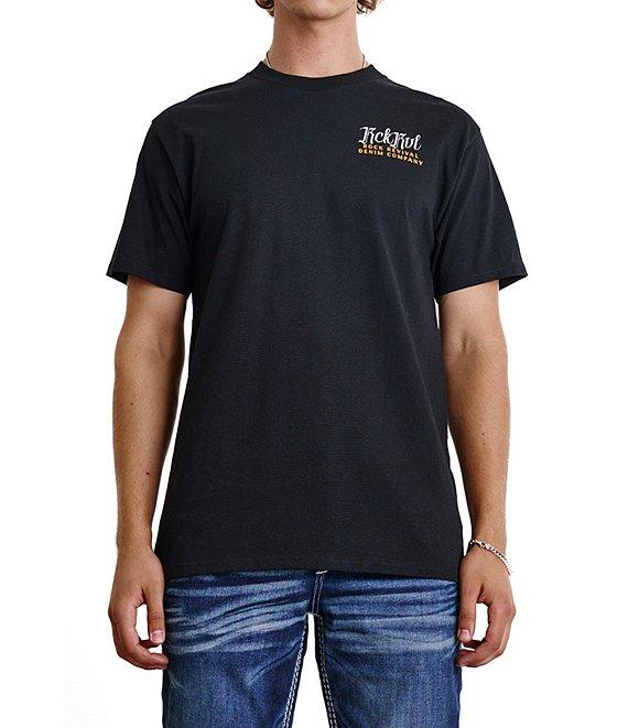 From Rock Revival, this t-shirt features: Crew neckline Long sleeves Oversized back graphic featuring "Rock Revival's" Fleur crest Screen-printed with signature gold and white accents Straight hem Pullover construction Premium cotton jersey for everyday comfort Machine wash/tumble dry low Imported.