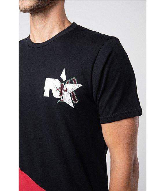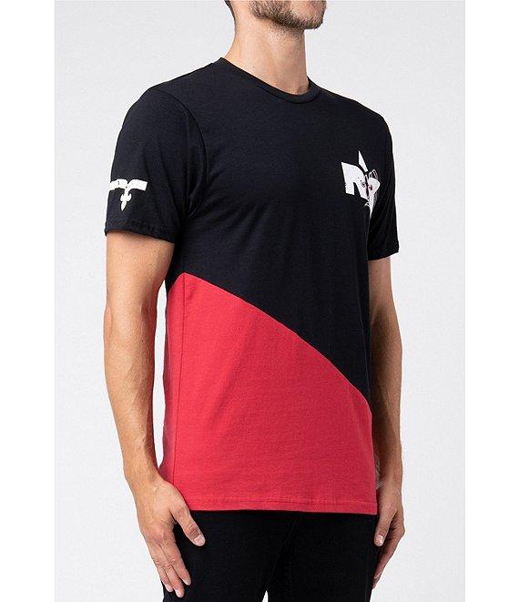 From Rock Revival, this T-shirt features: Diagonal colorblock design Crew neck Short sleeves Pullover styling White star print and "RR" logo on front and back Fleur-de-Lis design on one shoulder with white star and "RR" logo detail Cotton Machine wash/tumble dry Made in the USA.