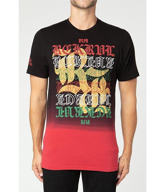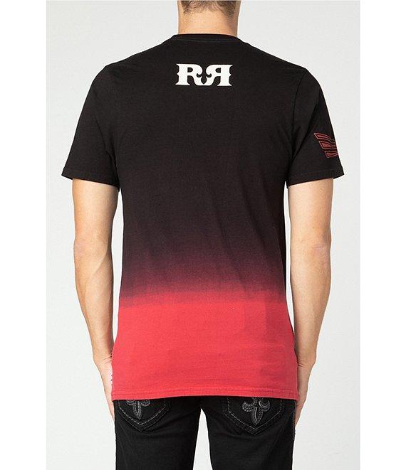 From Rock Revival, this tee features:ombré graduation printcrew neckshort sleevespullover stylinglarge gold "RR" initial, "RCKRVL" logo and contrasting red/white/green logo print on the frontcontrasting "RR" logo detail on the backcottonMachine wash/tumble dryImported.