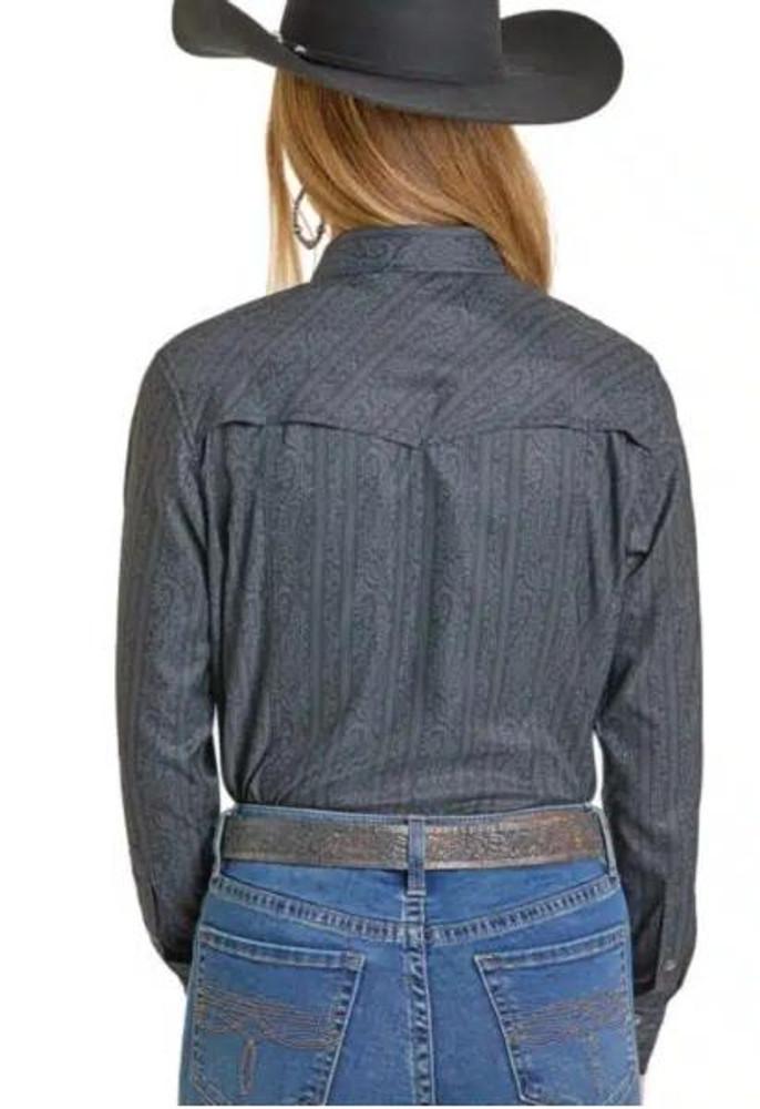 Rock & Roll Cowgirl® Ladies' L/S Black Tek Paisley Print Snap Shirt