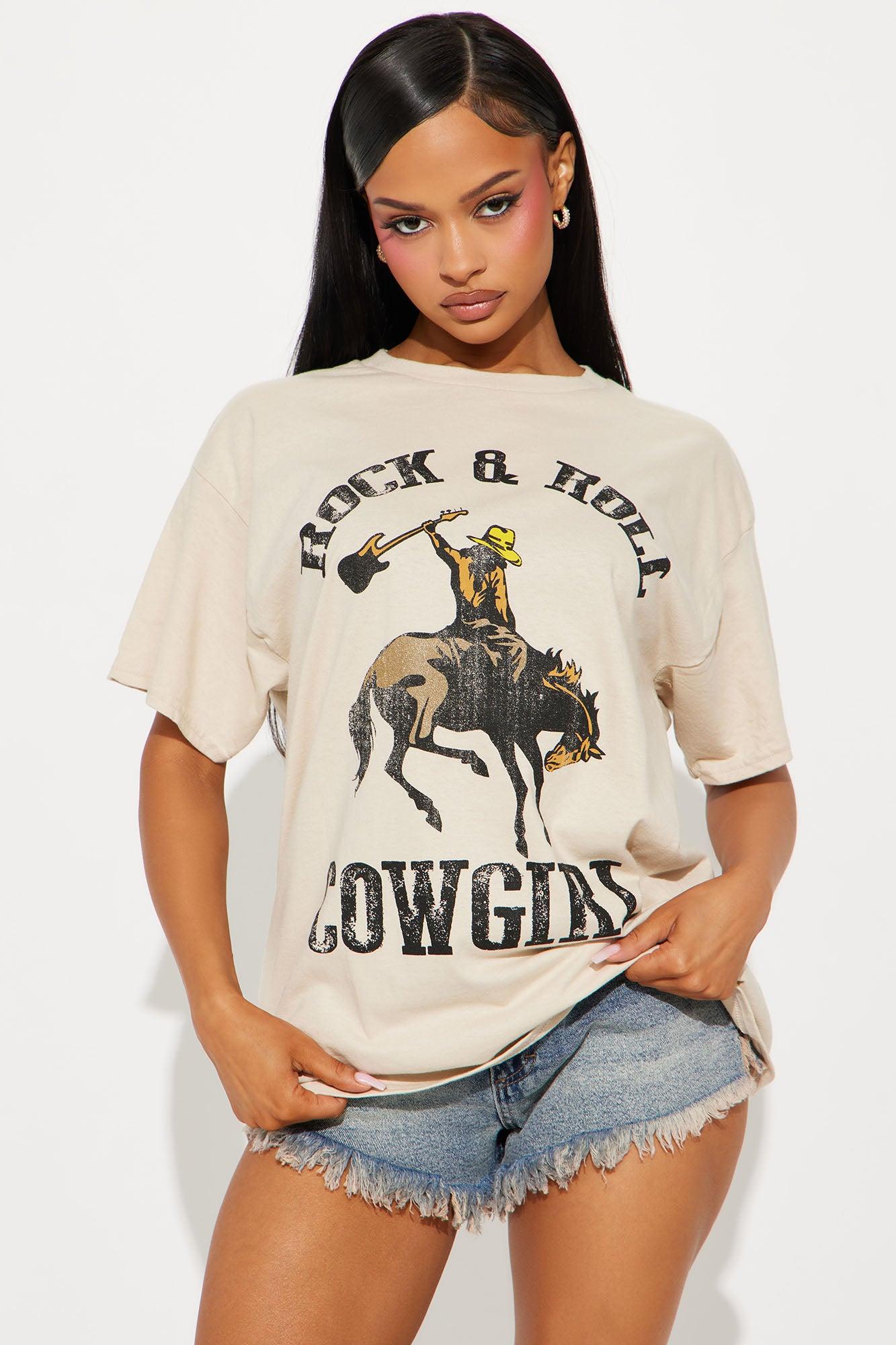 Rock & Roll Cowgirl Oversized Tee - Taupe