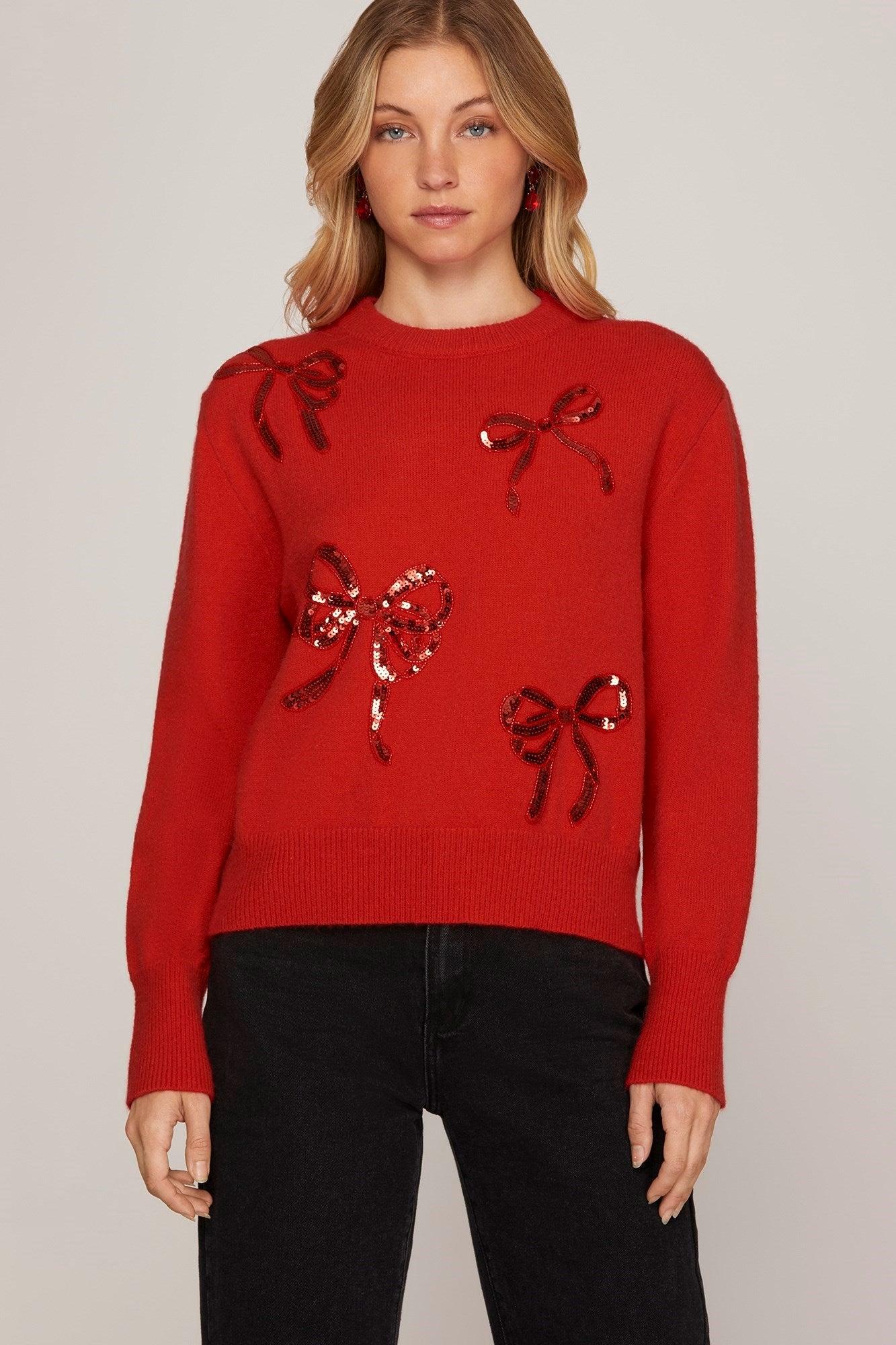 ✨ Embrace the sparkle this season with our Long Sleeve Sequin Ribbon Sweater Top! ✨ Perfect for adding a touch of glamour to your everyday wardrobe, this sweater is where comfort meets chic sophistication. The delicate sequin ribbon detailing catches the light beautifully, ensuring you shine bright wherever you go.