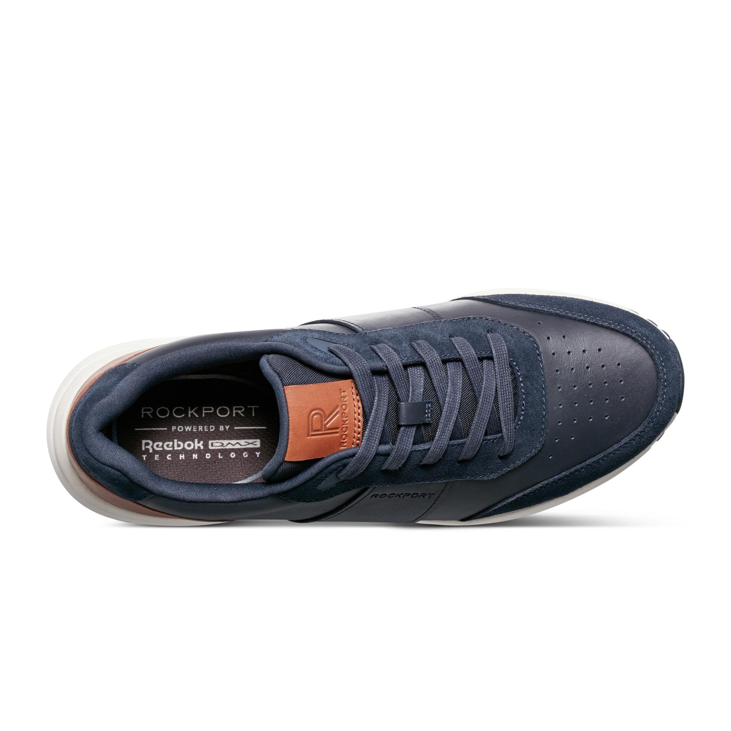 The Rockport x DMX™ Baker classic casual sneaker can be worn well with your favorite casual attire. Reebok DMX™ Technology is a lightweight dynamic cushioning system that gives you a springy feel underfoot and provides long-lasting cushioning. This shoe is orthotic friendly.