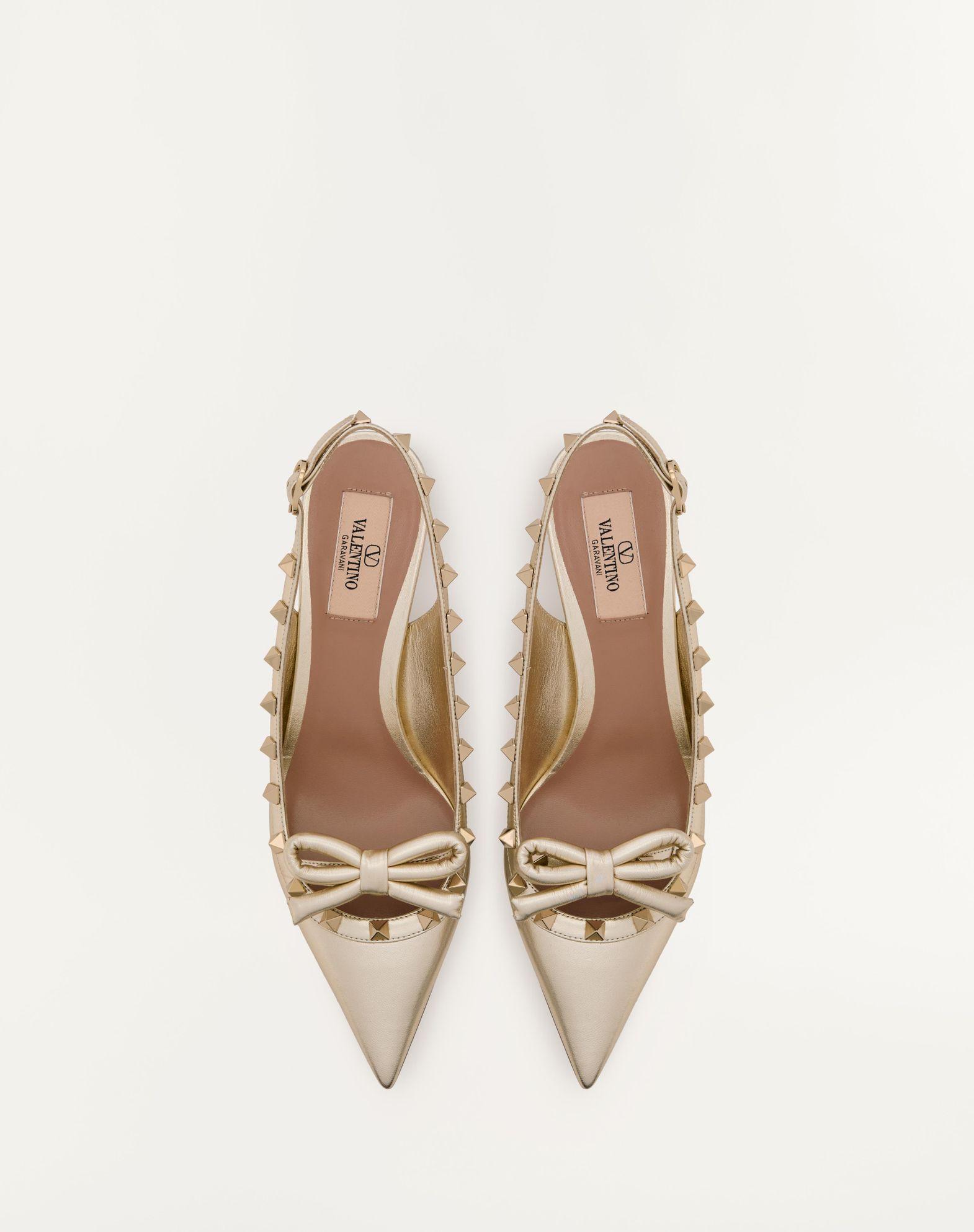 Visit the Valentino Online Boutique and discover Rockstud Bow Slingback Pumps In Laminated Nappa Leather And 60mm Tone Studs for Woman. Complimentary shipping and returns.
