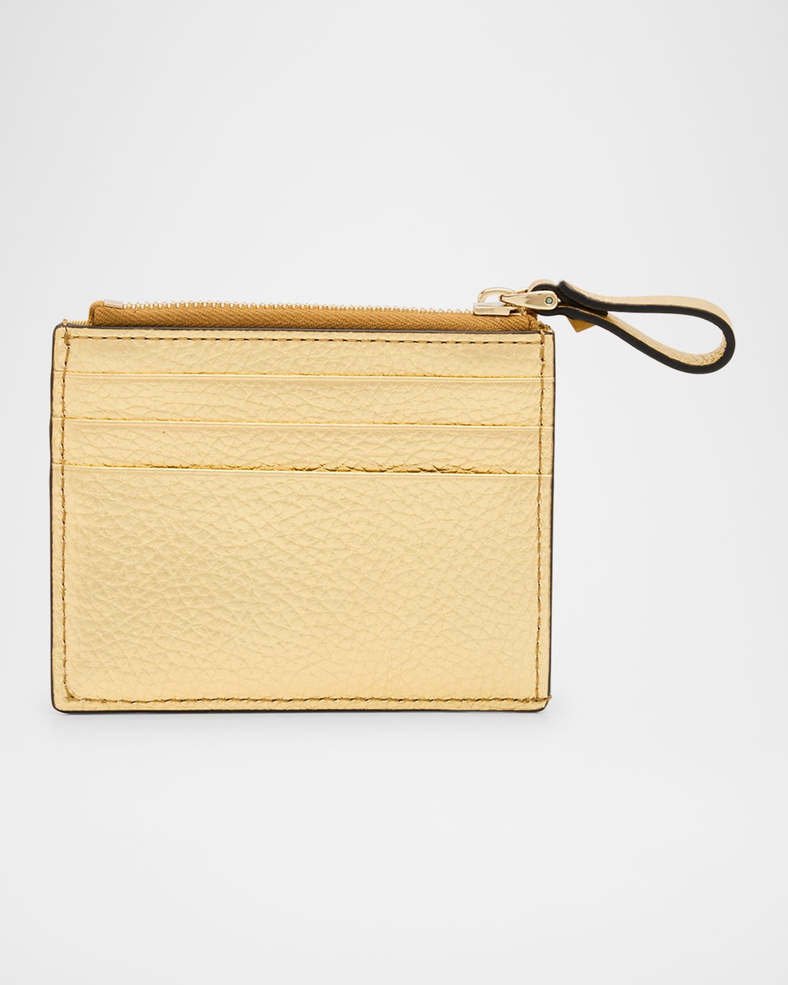 ROCKSTUD GRAINY METALLIC CALFSKIN CARD HOLDER WITH ZIPPER