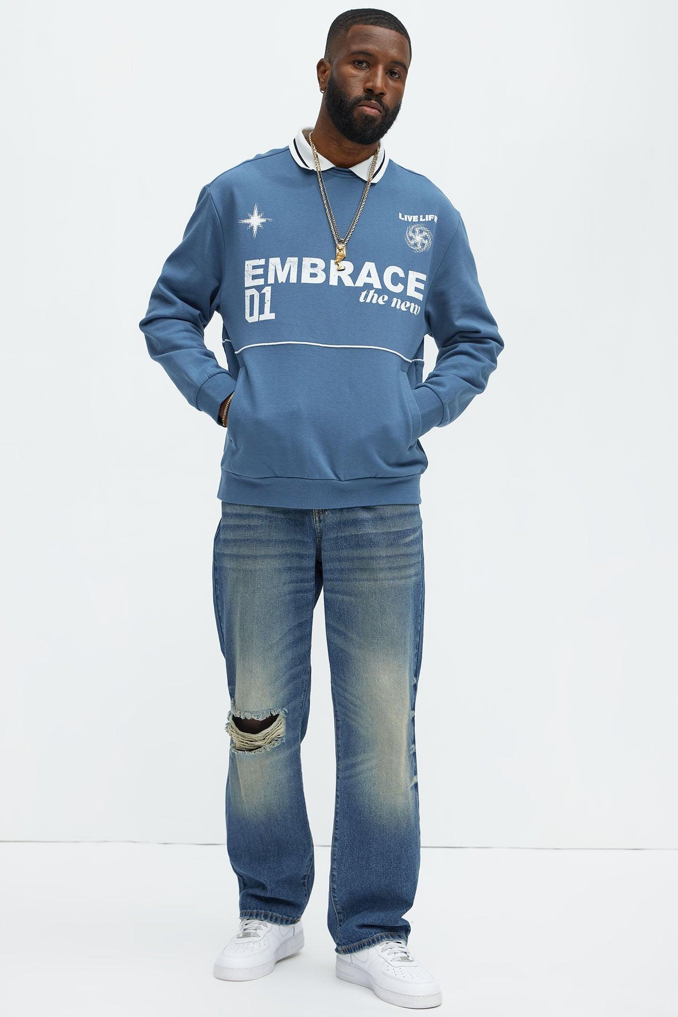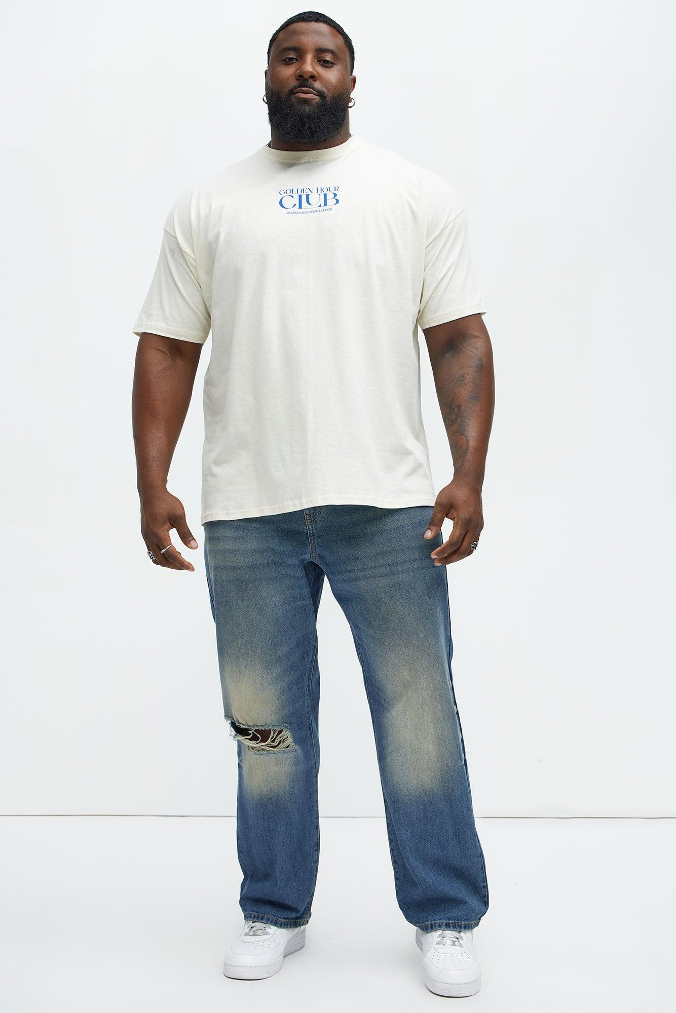 Available In Vintage Blue Wash. Straight Fit Zip Fly Button Closure 5 Pocket Detail Distressed Ripped Detail 100% Cotton Disclaimer: Due To The Specialized Distressing & Wash Process, Each Garment Is Unique. Imported California Proposition 65 WARNING: Cancer and Reproductive Harm - www.P65Warnings.ca.gov.