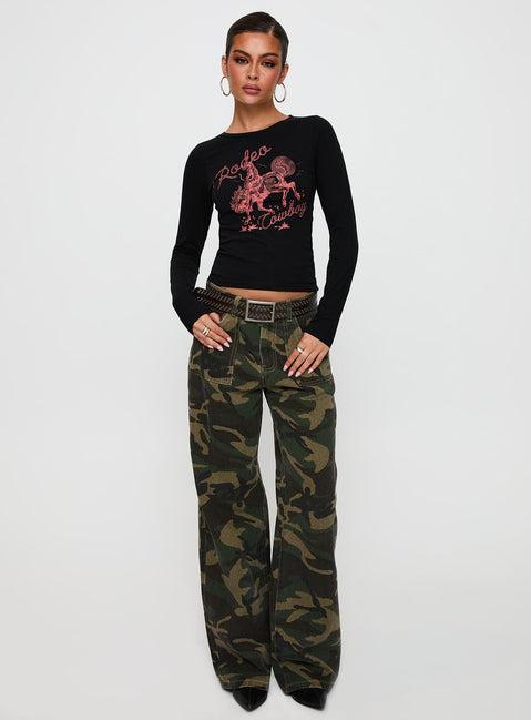 Rodeo Cowboy Long Sleeve Top Washed Wine