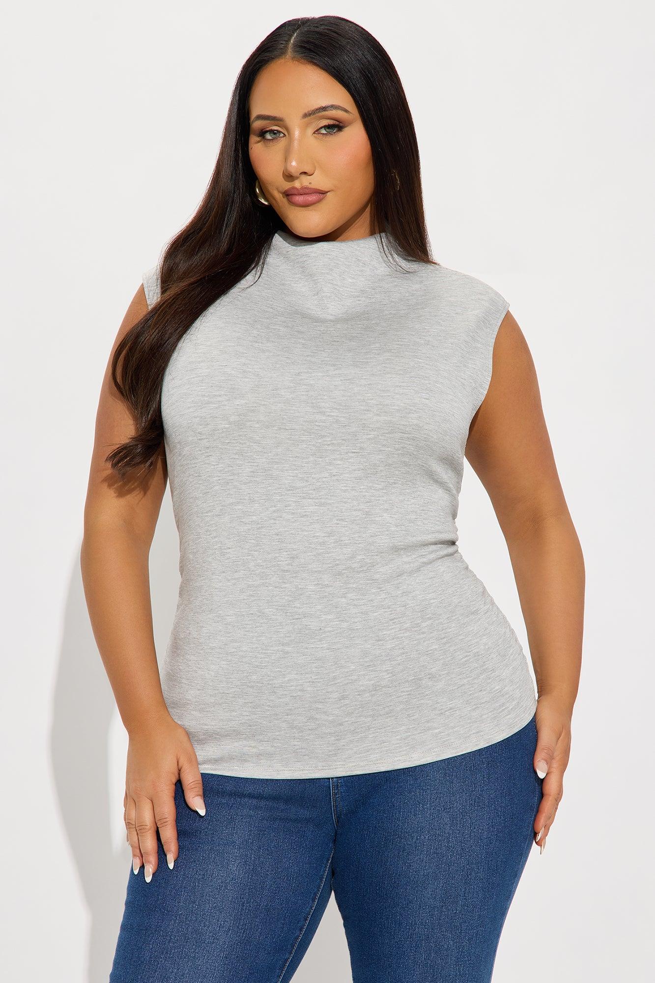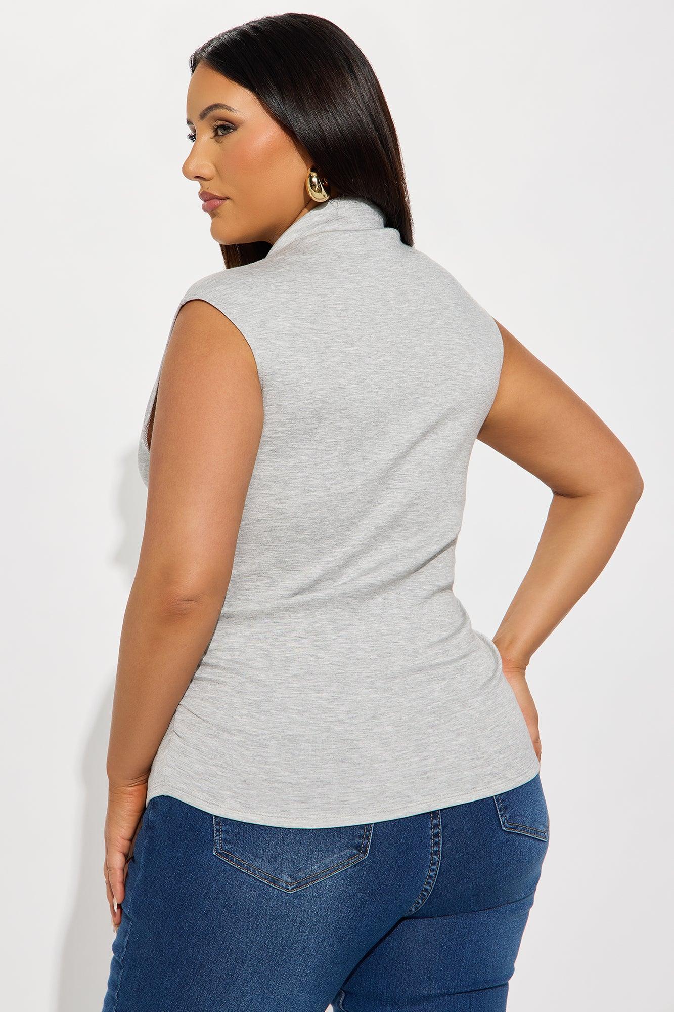 Available In Cream And Heather Grey. Top Mock Neck Sleeveless Ruched Stretch 48% Modal 45% Polyester 7% Spandex Imported