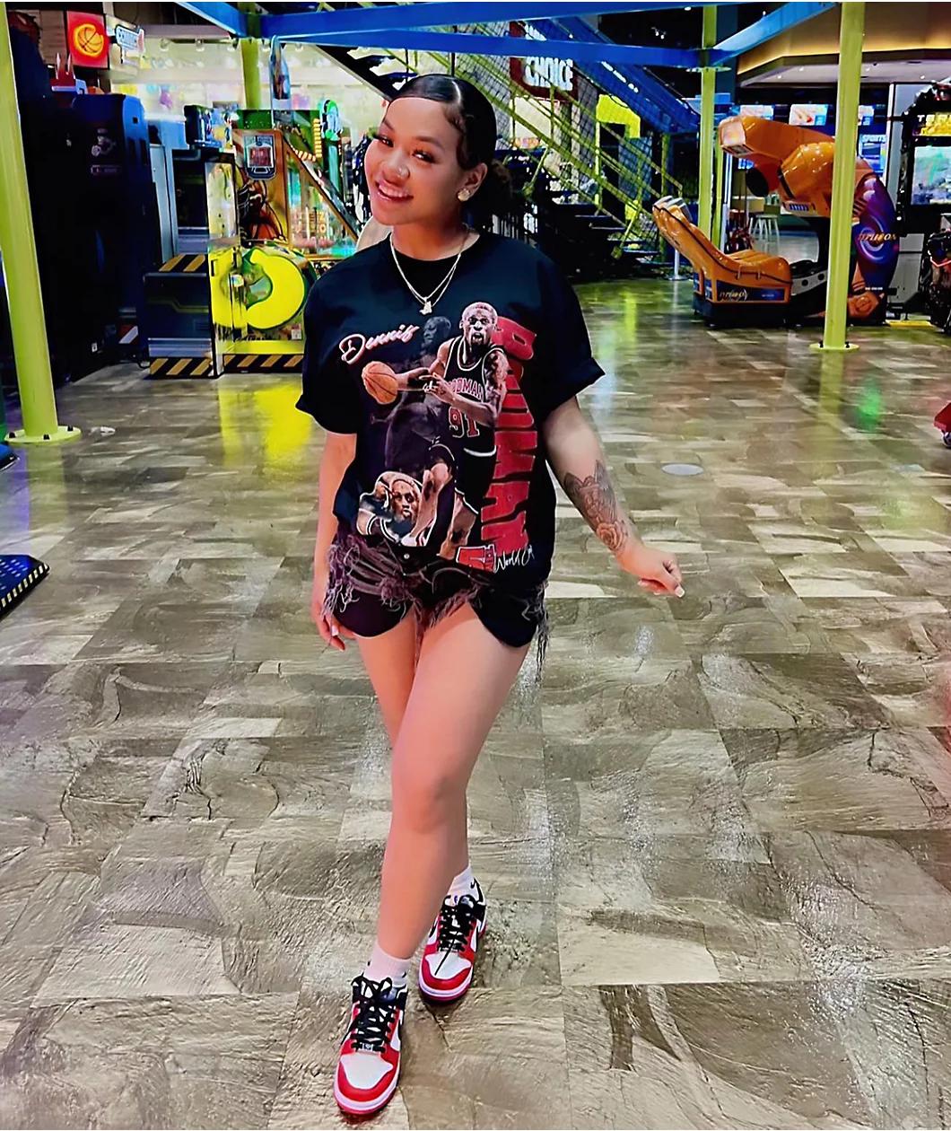 From Rodman Apparel, the 5X World Champion t-shirt comes in a black colorway featuring images of Dennis Rodman during his days in Chicago. The basketbal icon's name is printed in red on the front, as the midweight cotton t-shirt is complete with a ribbed