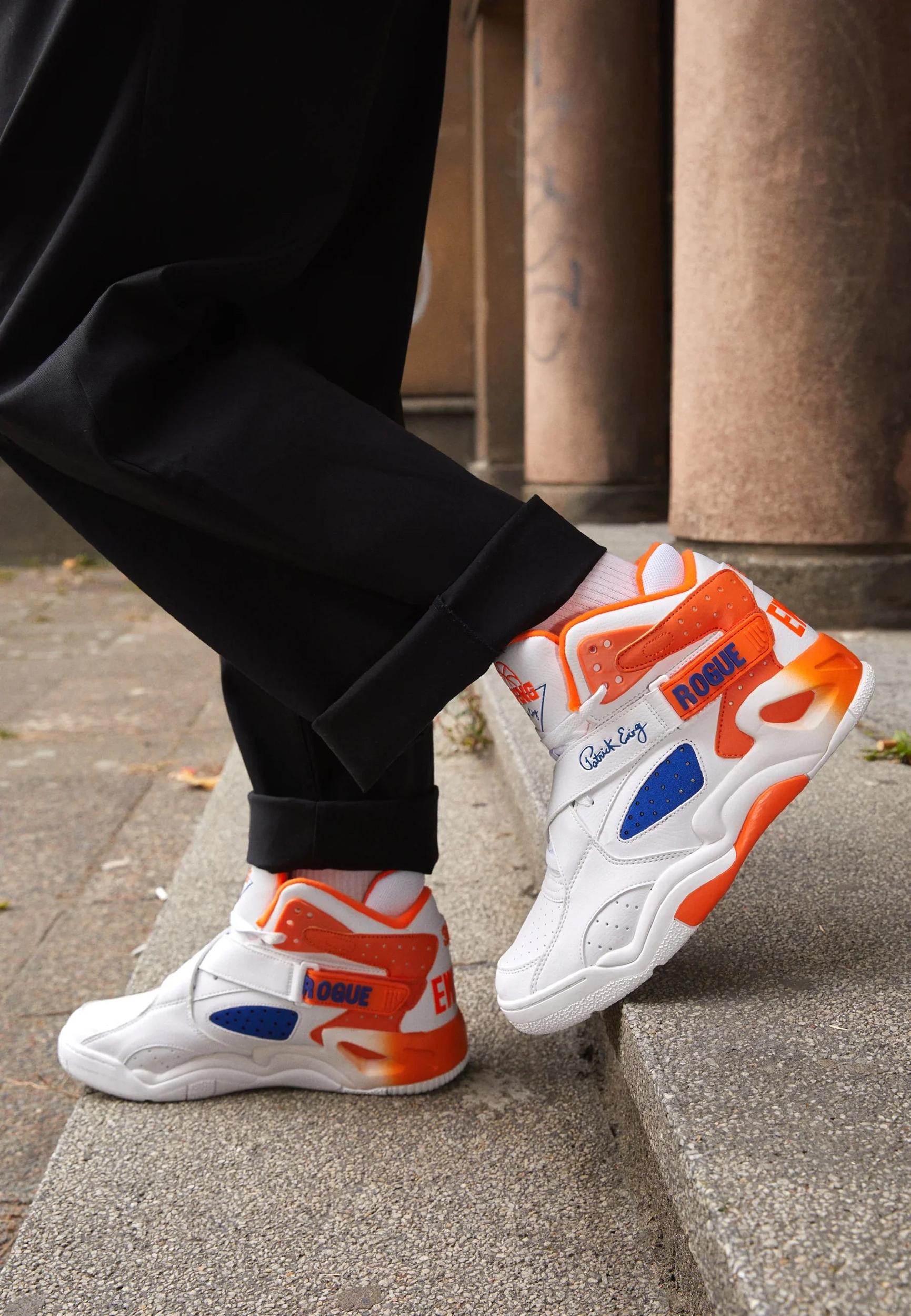 The ROGUE was one of the most in demand shoes of our past and has been brought back due to popular demand. Available for the first time since our comeback, the ROGUE features a forefoot cross strap support system coupled with neoprene midfoot inserts along with an EVA midsole for lightweight cushioning. This colorway features a New York City themed colorway with a White Leather upper and Royal and Orange accents. Available in Mens Sizes 5-16.Product #1BM01886-132