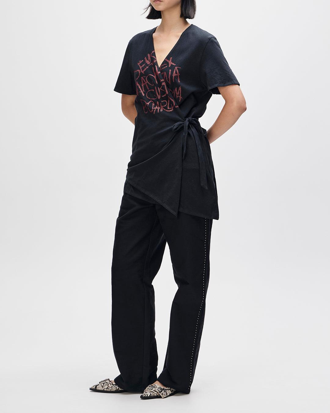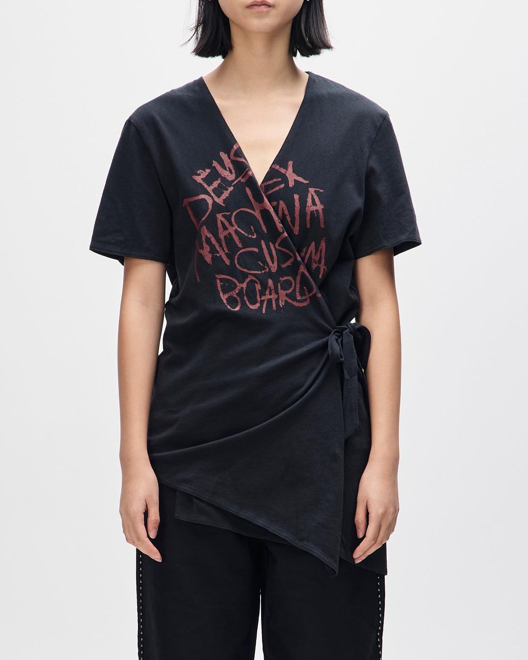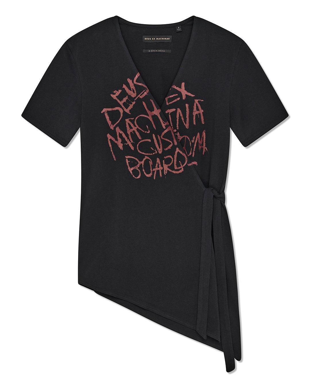 Midweight V-Neck wrap tee with asymmetric hem