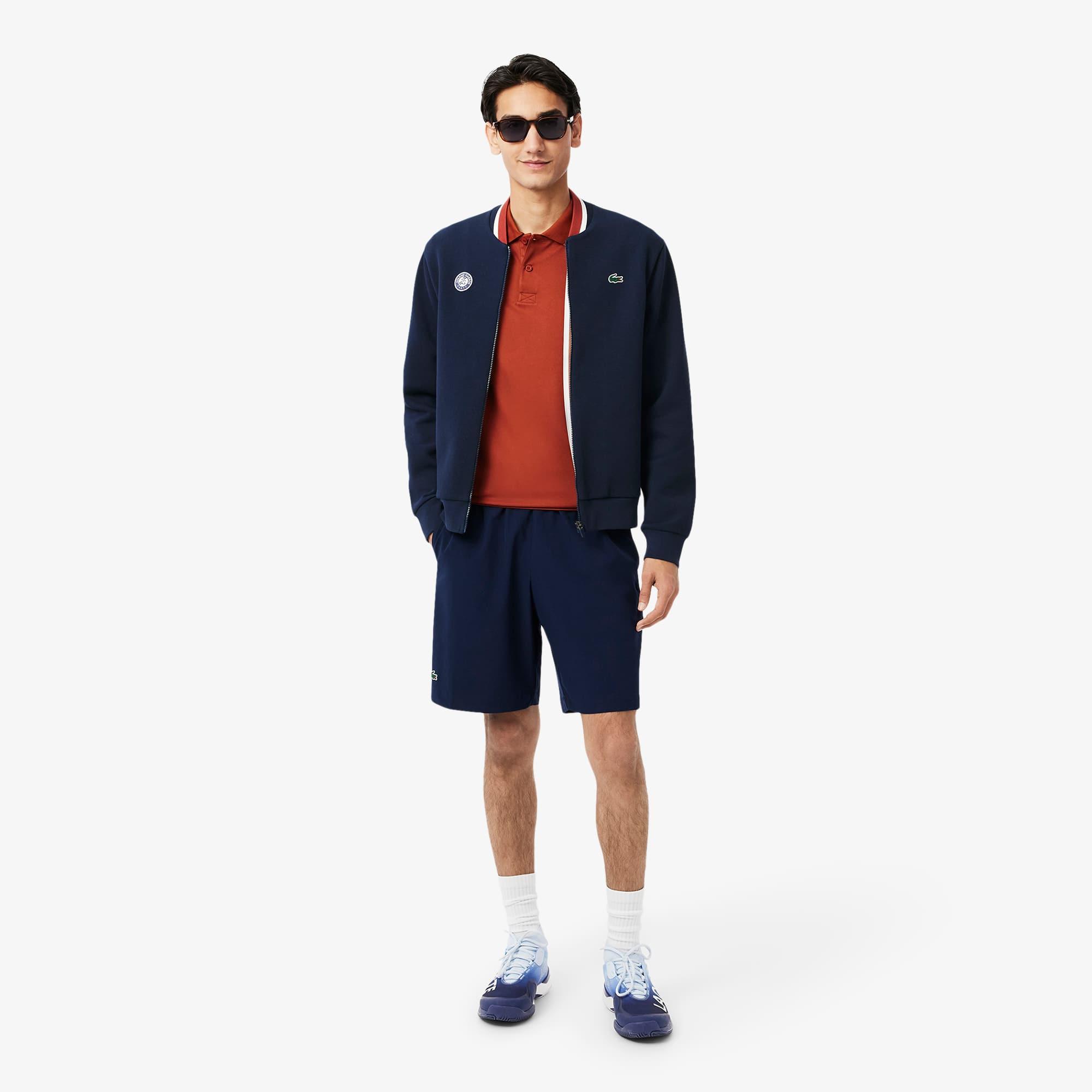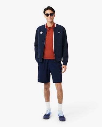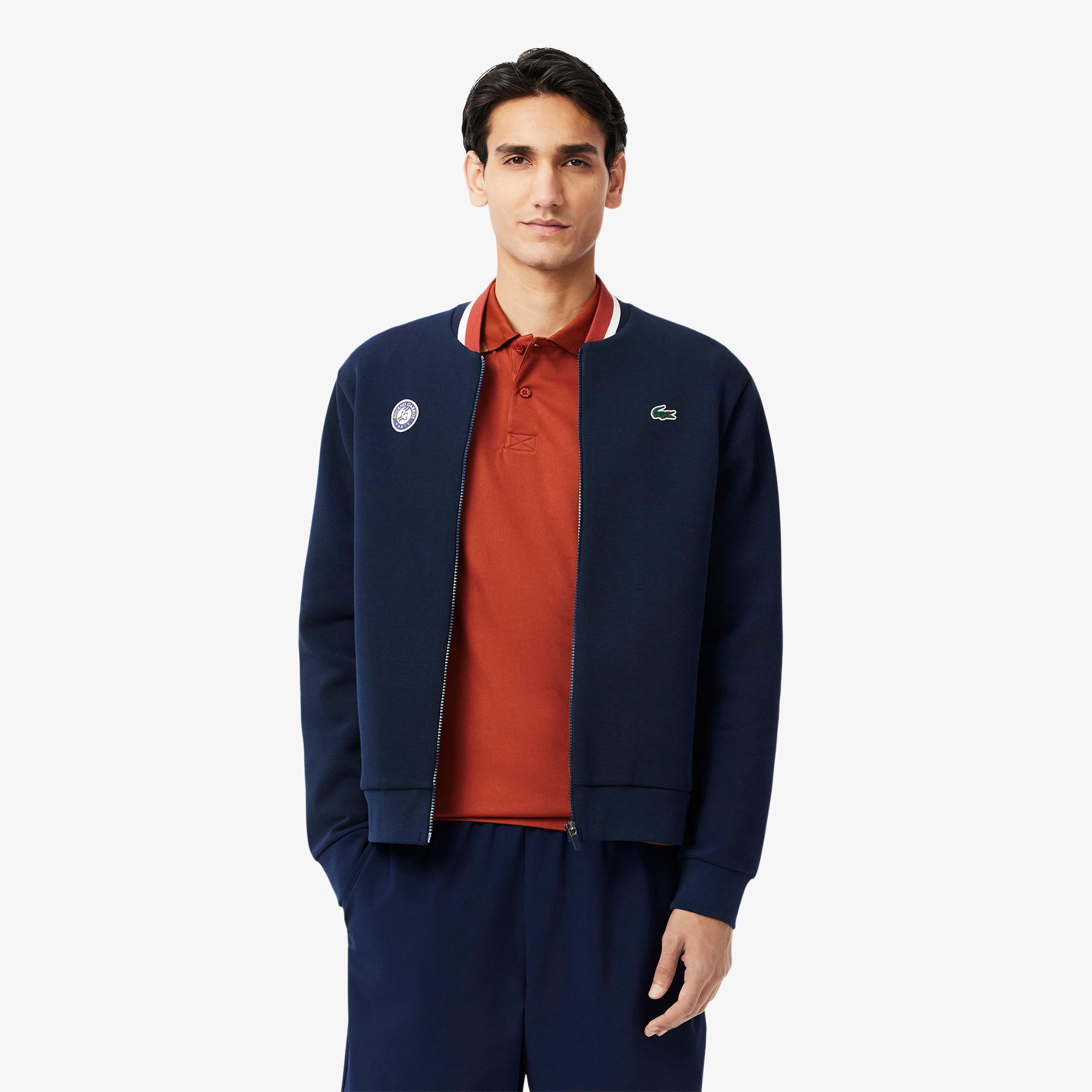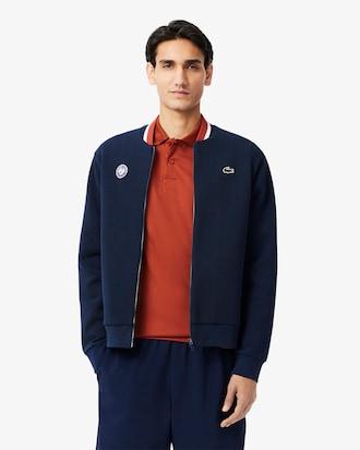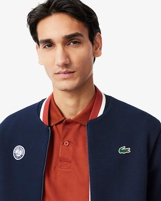 This jacket from Lacoste, historic partners of Roland-Garros, was designed for the tournament's ballboys. An elegant, technical piece made from our iconic, breathable double face piqué for a chic feel. With ribbed finish details on the collar and sleeves.