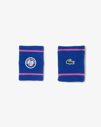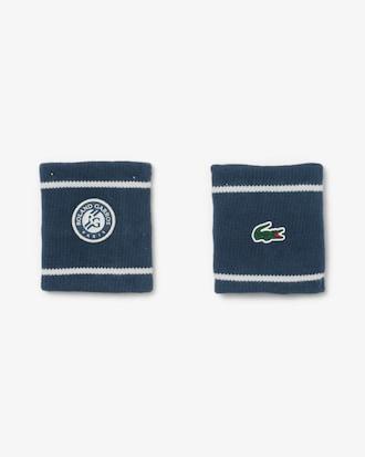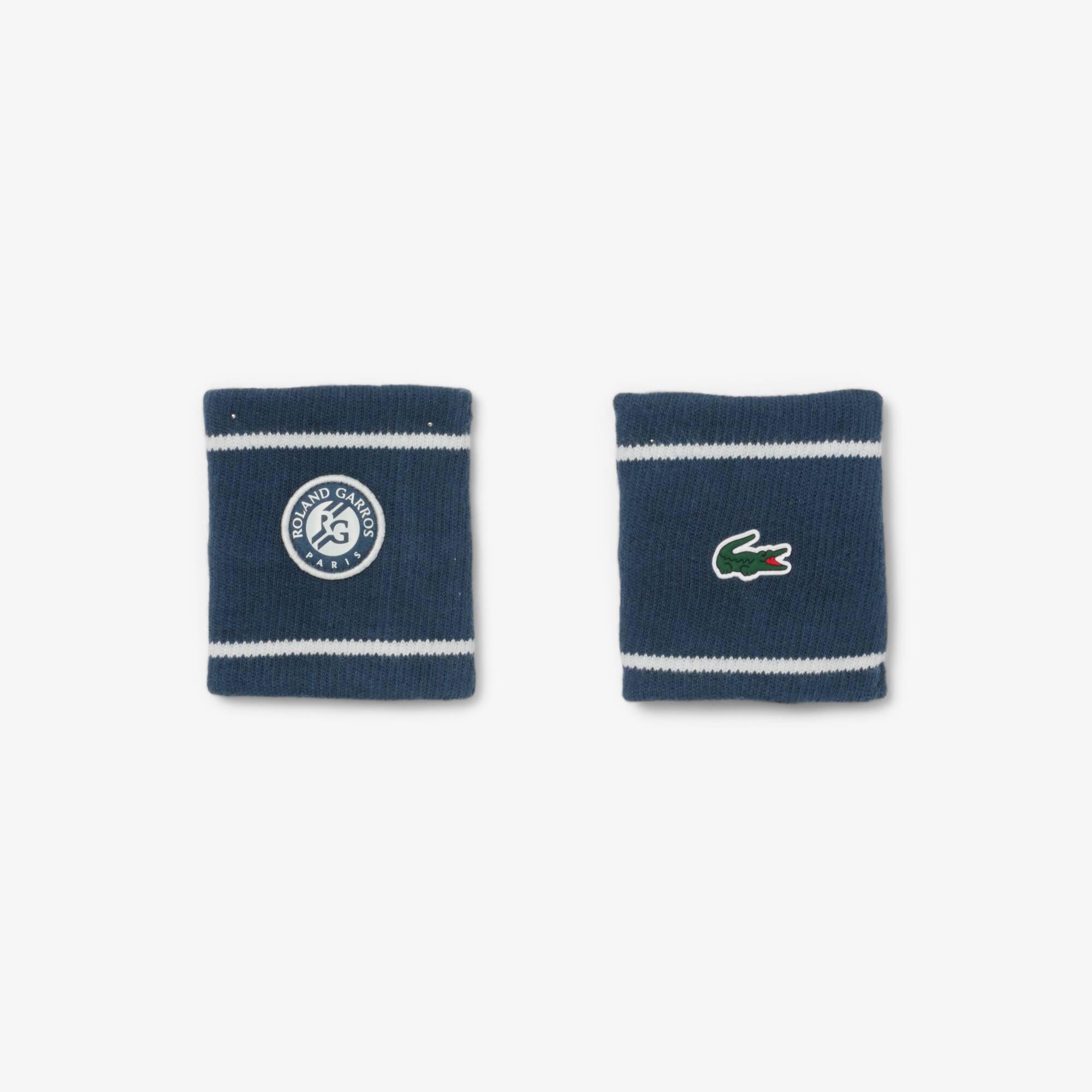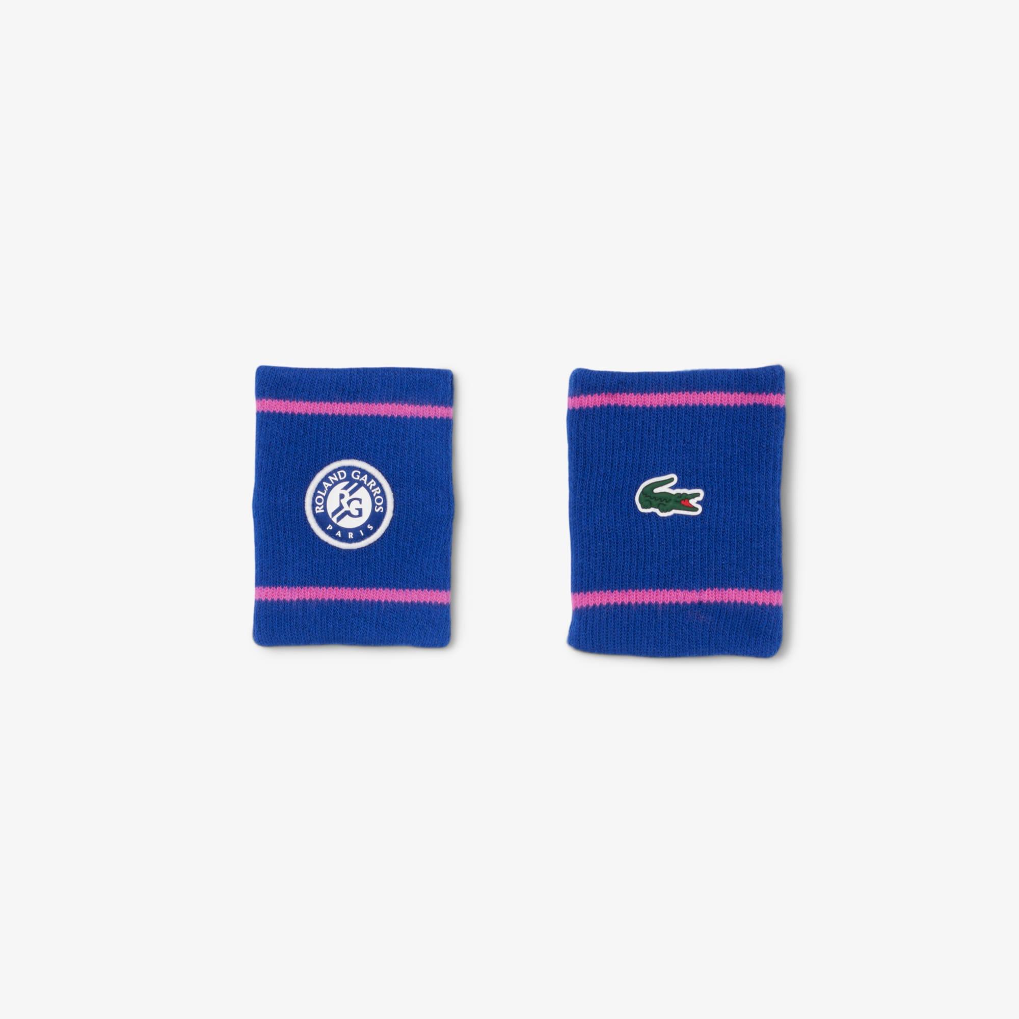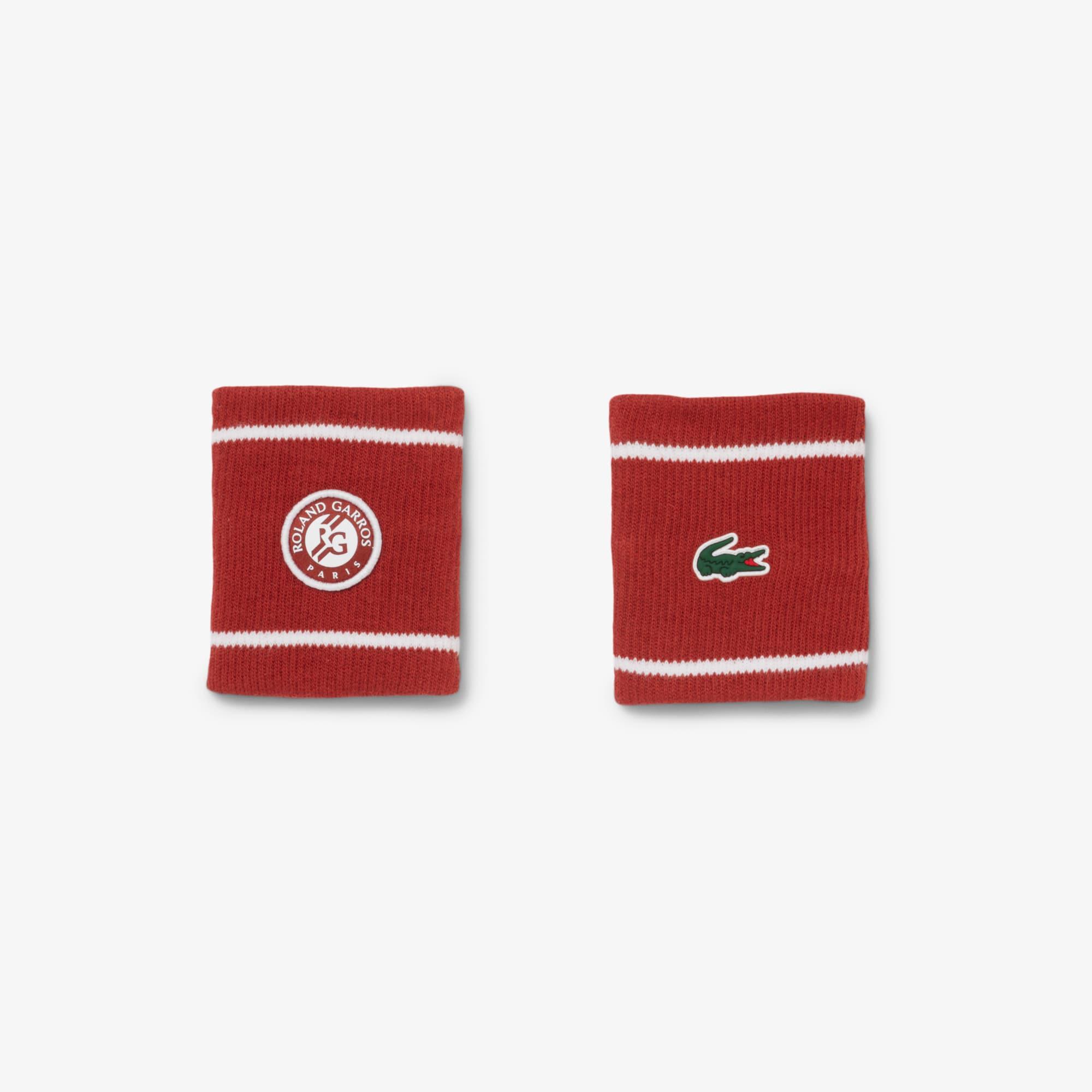 These Lacoste x Roland-Garros wristbands are designed for on-court performance. Made from striped jacquard jersey, they feature a dry-touch function for optimum comfort. A green silicone crocodile and a Roland-Garros badge mark this essential accessory.