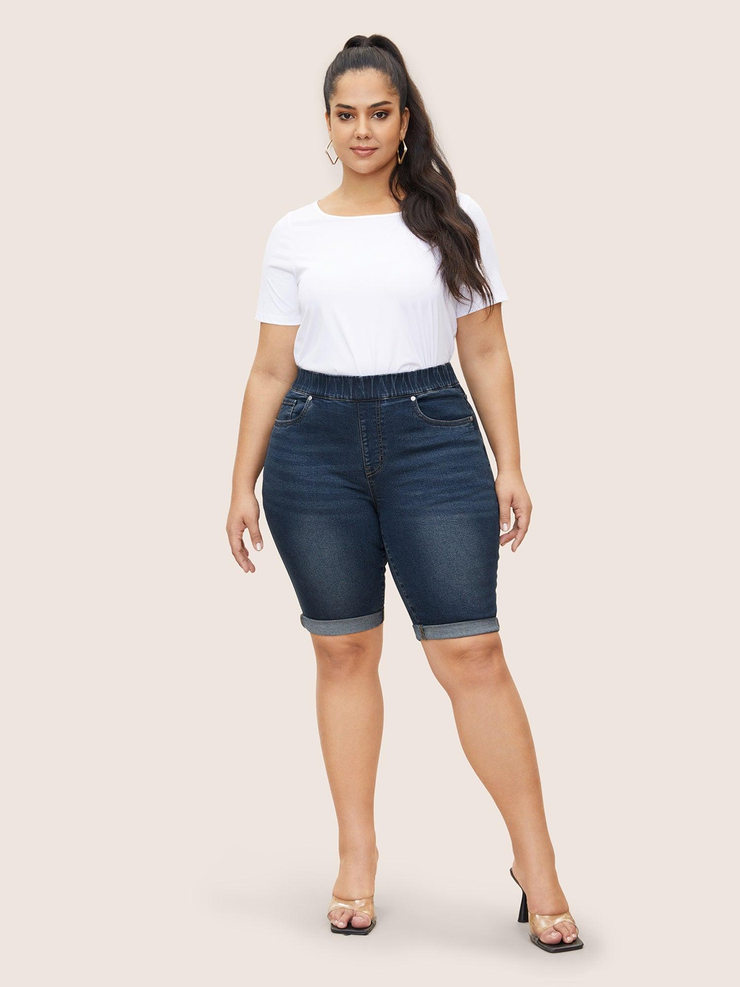 Shop Roll Hem Elastic Waist Dark Wash Denim Shorts at BloomChic. Plus Size Clothing & Plus Size Denim Shorts. BloomChic is a digital-first fashion and lifestyle destination for modern women sizes 10-30.