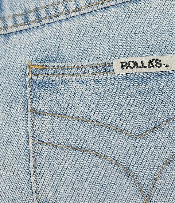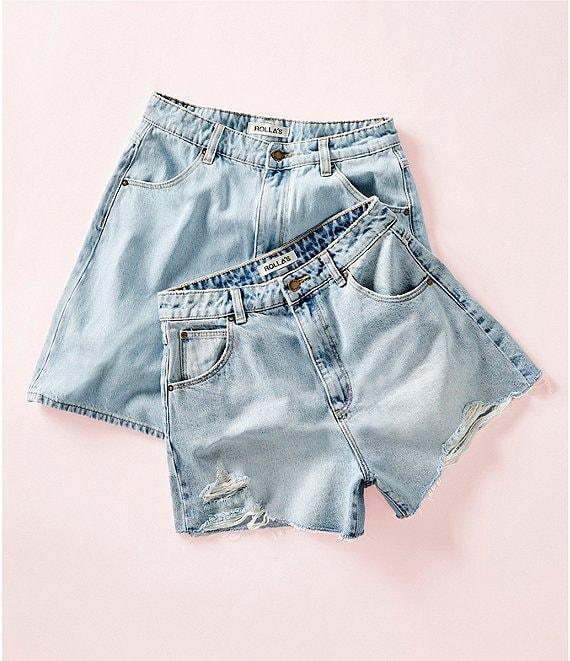 From Rolla's, these shorts feature: High rise Front zip/button closure Relaxed cheeky fit Raw hem Rolla's signature pockets & trims Approx. 12.2" front rise, 3.7" inseam, 26.3" leg opening Cotton Machine wash Imported.