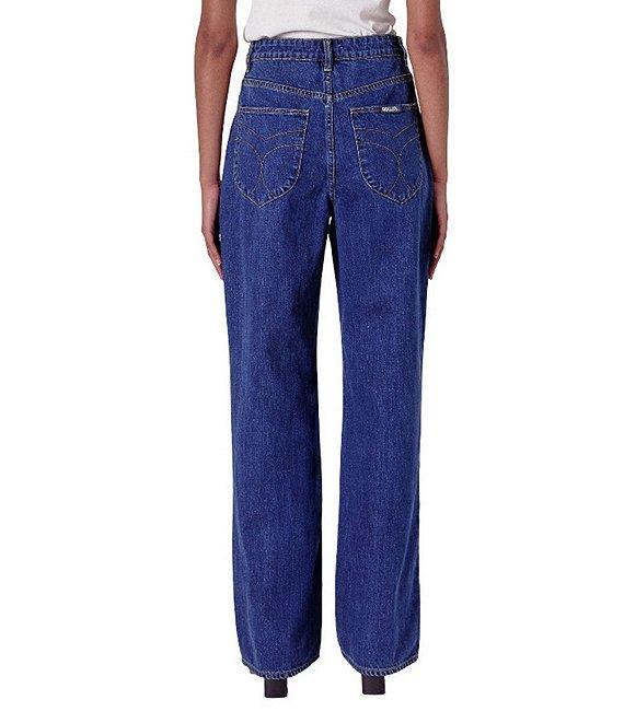 From Rolla's, these jeans feature: Denim fabrication Light blue vintage stone wash High rise waist Relaxed straight leg silhouette Front button and zip closure Rolla's signature back pockets Vintage trim detail Approx. 12" rise, 31.5" inseam, 20" leg opening Cotton Machine wash/Dry inside out Imported.