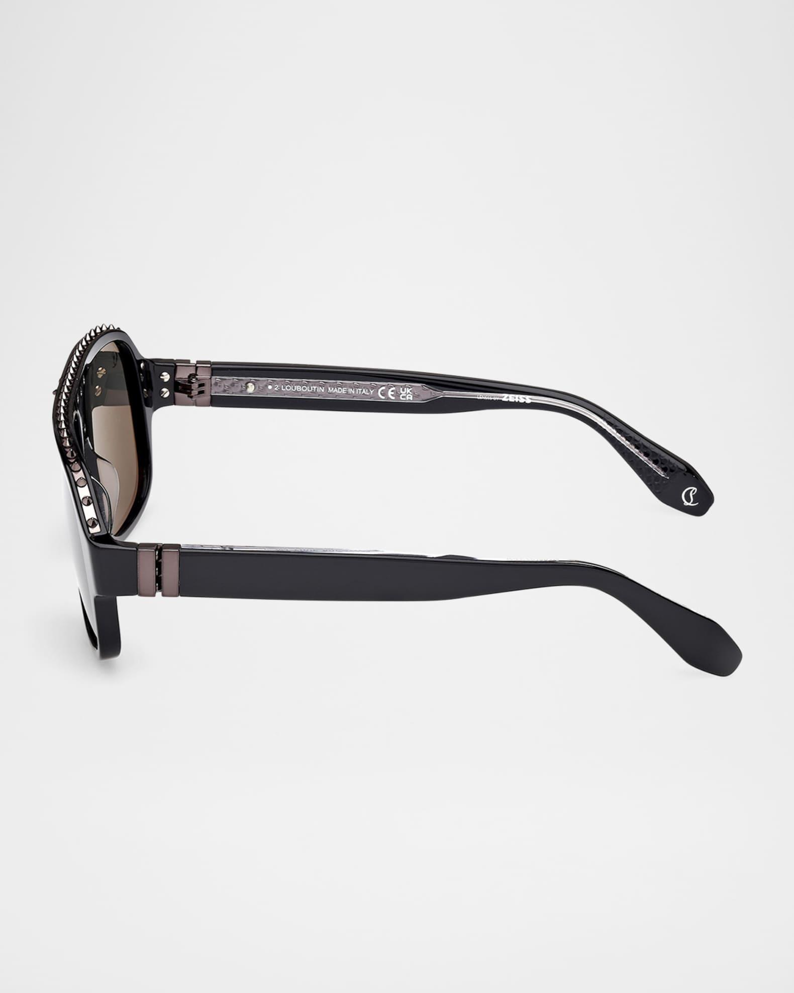 Christian Louboutin "Roller" aviator sunglasses in acetate Eye/bridge/temple (in mm): 57-13-140 Gradient lenses Saddle nose bridge Thin, tapered arms Featuring classic spiked details Acetate Spot clean 100% UVA/UVB protection Made in Italy Proposition 65 warning for California residents