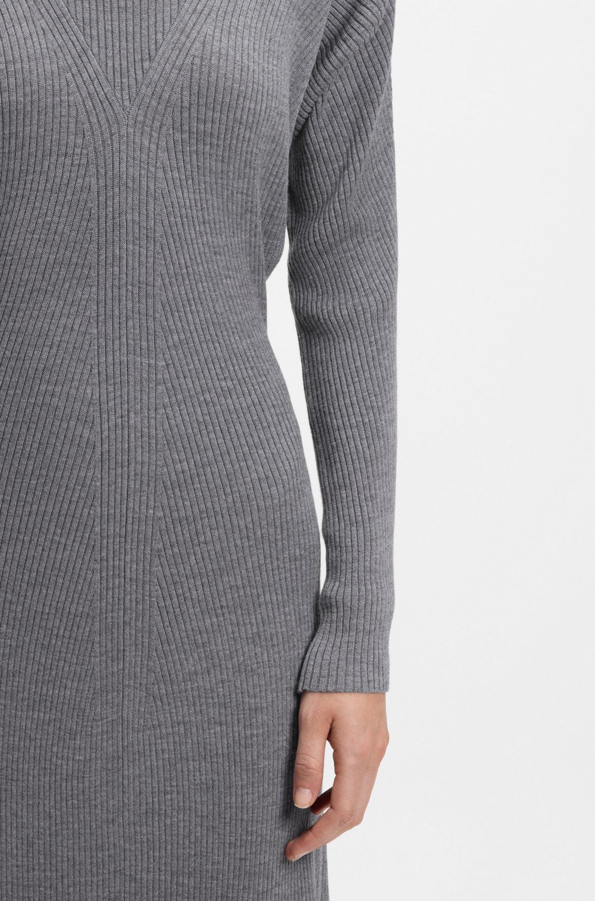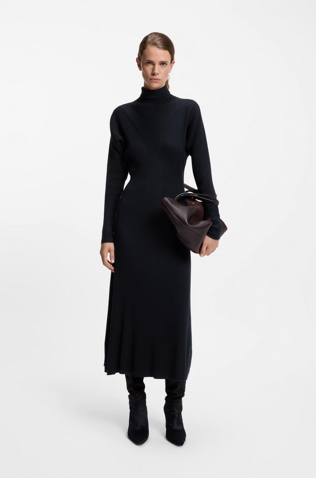 Knitted with flattering mixed ribbing, this BOSS Womenswear dress is crafted in virgin wool for natural comfort. Long sleeves and rollneck profile.