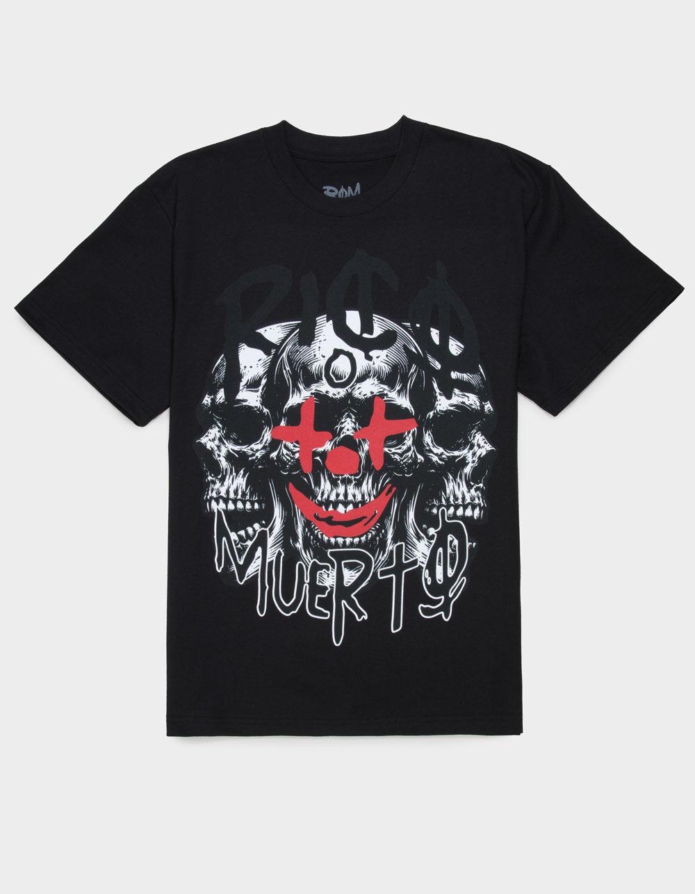 ROM Rico Tee. Large graphic screened on front. Crew neck. Short sleeve. 100% Cotton. Machine wash. Imported.
