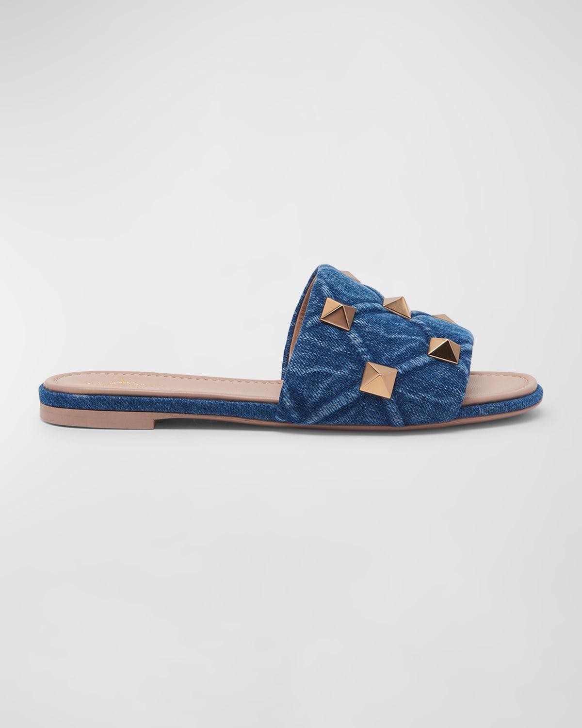 Valentino Garavani Roman Stud slides in denim fabric. Quilted design and decorated with maxi studs Diamond pattern enhanced by contrast-color stitching 15x15 mm / 0.6 x 0.6 in. maxi studs in rose gold finish Lightly padded insole for added comfort Heel height: 5 mm / 0.2 in. Made in Italy. Lsd Shoes - Valentino Shoes > Valentino Garavani > Saks Fifth Avenue > Barneys. Valentino Garavani. Color: Blue. Size: 7.5.