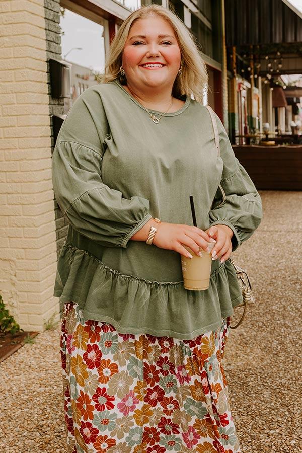 - Bring a little casual charm to your day with this top that's all about sweet, laid-back vibes! With a playful touch of ruffles, it's just the piece you need to keep your look on-trend and effortlessly stylish. - Unlined vintage washed material - A round neckline - Long sleeves - A relaxed silhouette that ends in a subtly ruffle hemline