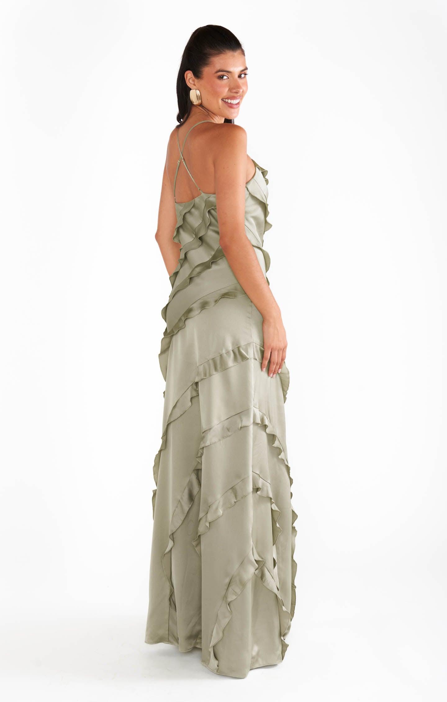 Mae Satin Gown - Olive